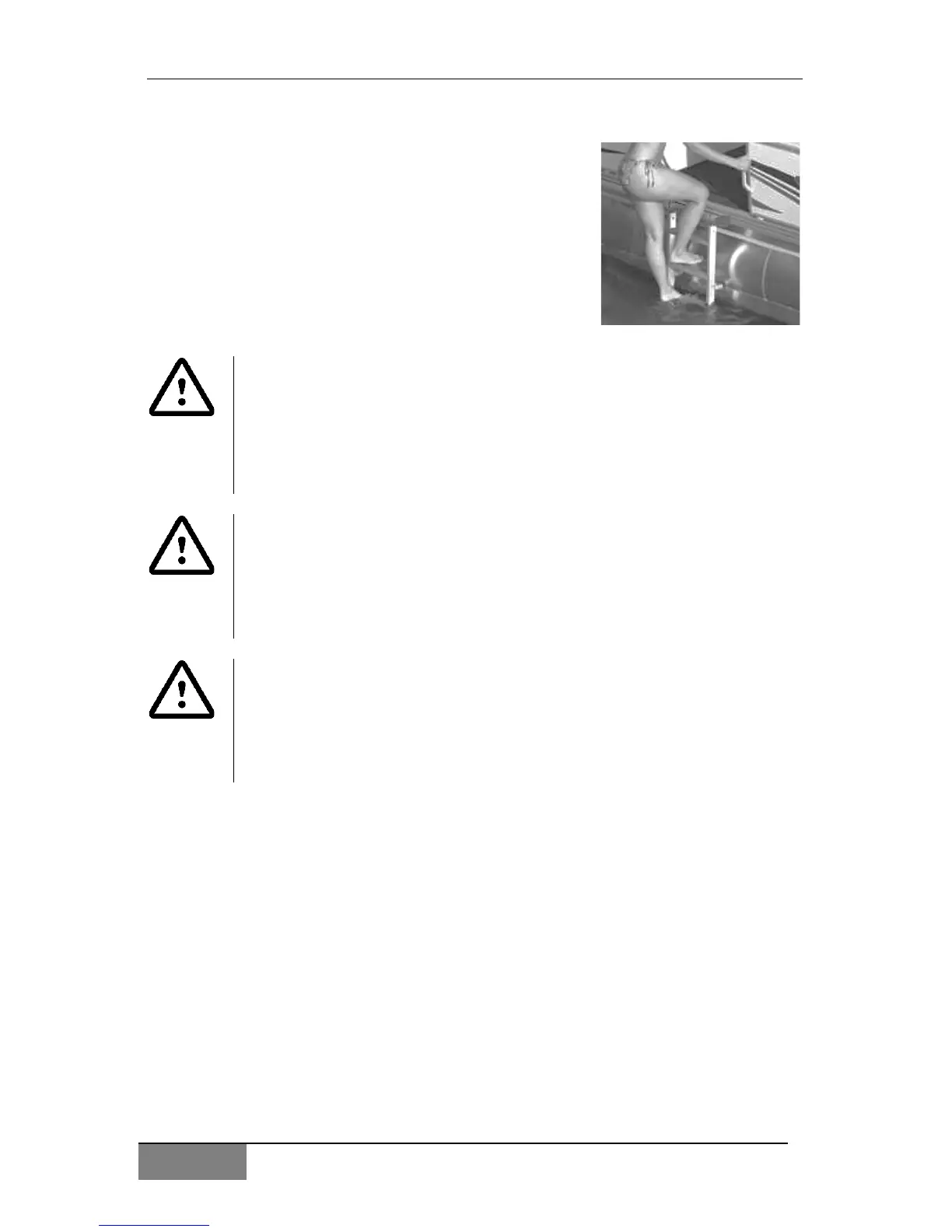 your boat. Do not climb on the pontoon tubes.