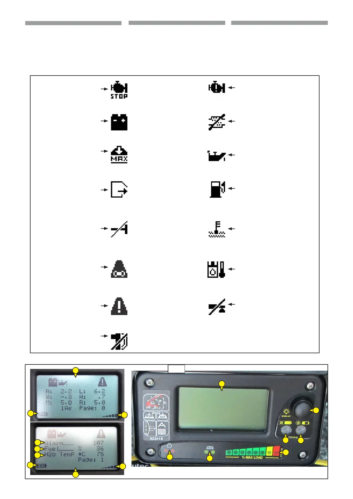 - FUNCTIONS AND ALARMS INDICATORS: