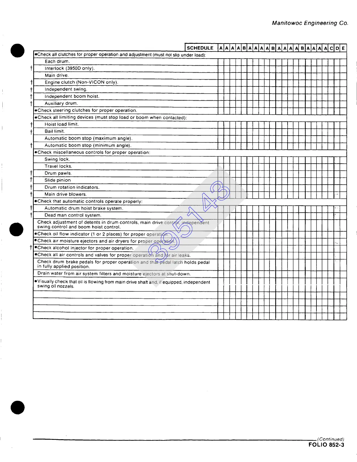 eCheck all clutches for proper operation and adjustment (must not slip under load):