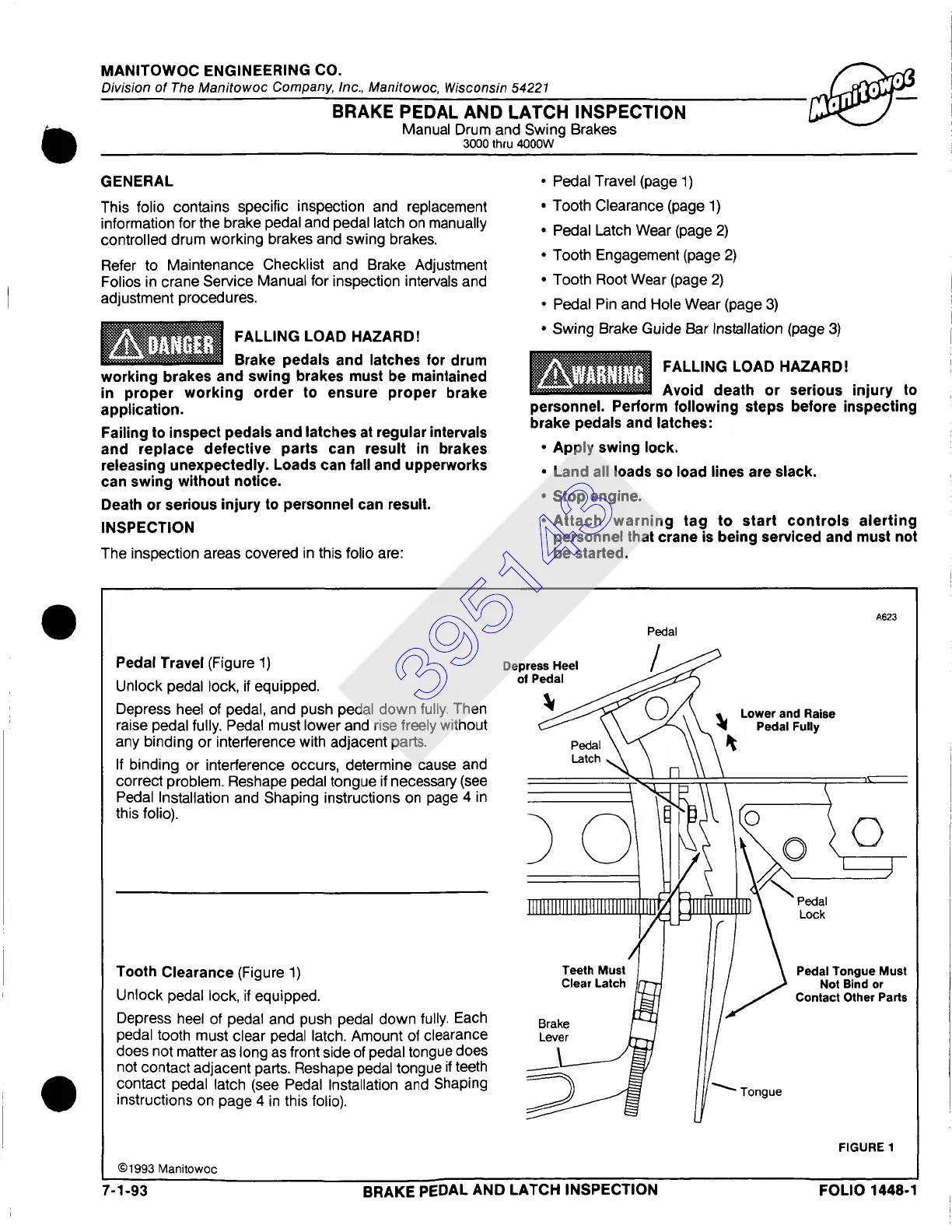 7-1-93 BRAKE PEDAL AND LATCH INSPECTION FOLIO 1448-1