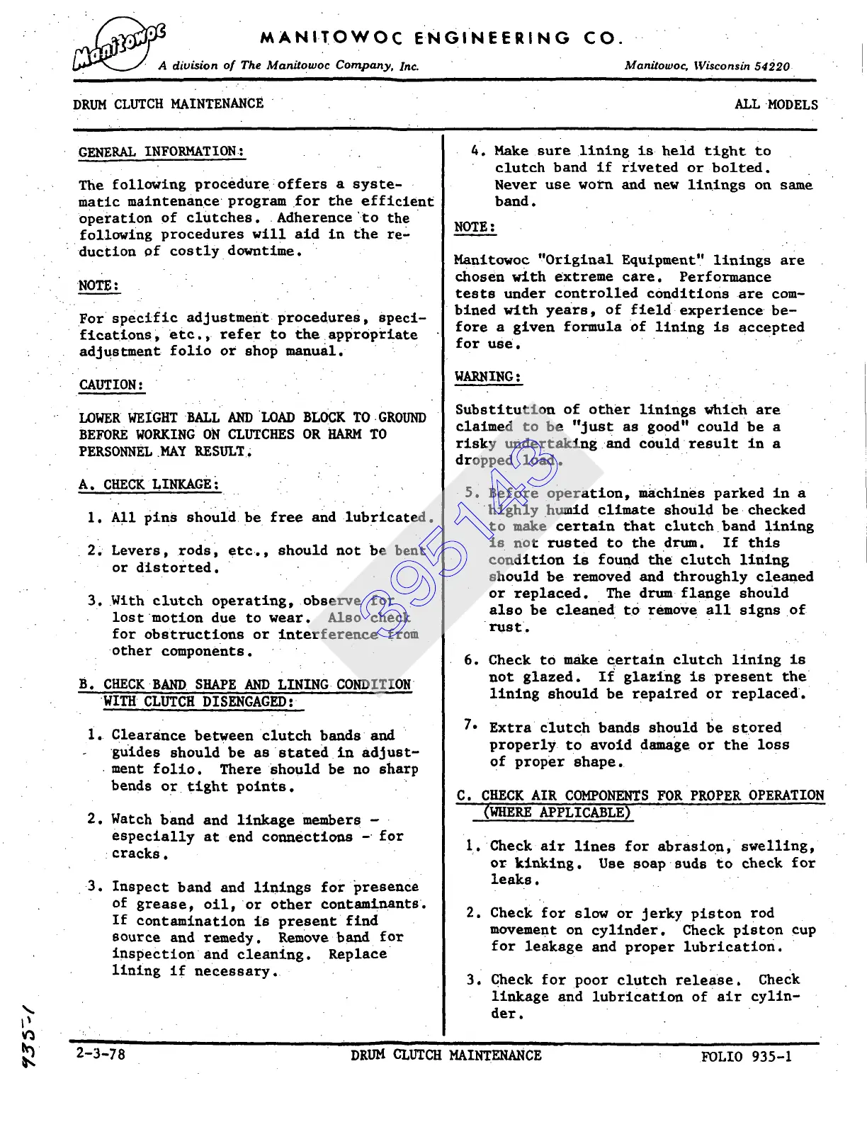 BEFORE WORKING ON CLUTCHES OR HARM TO