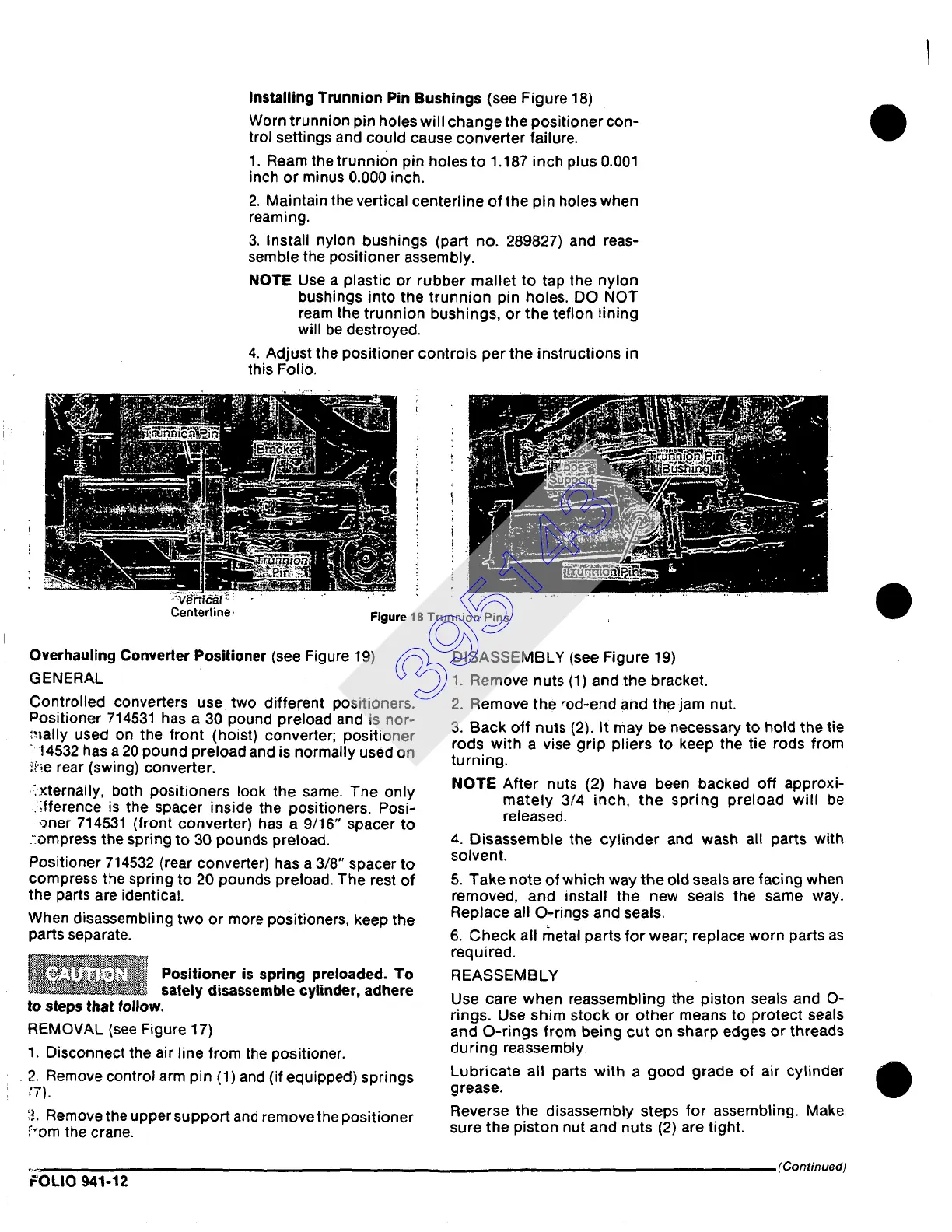 bushings into the trunnion pin holes. DO NOT
