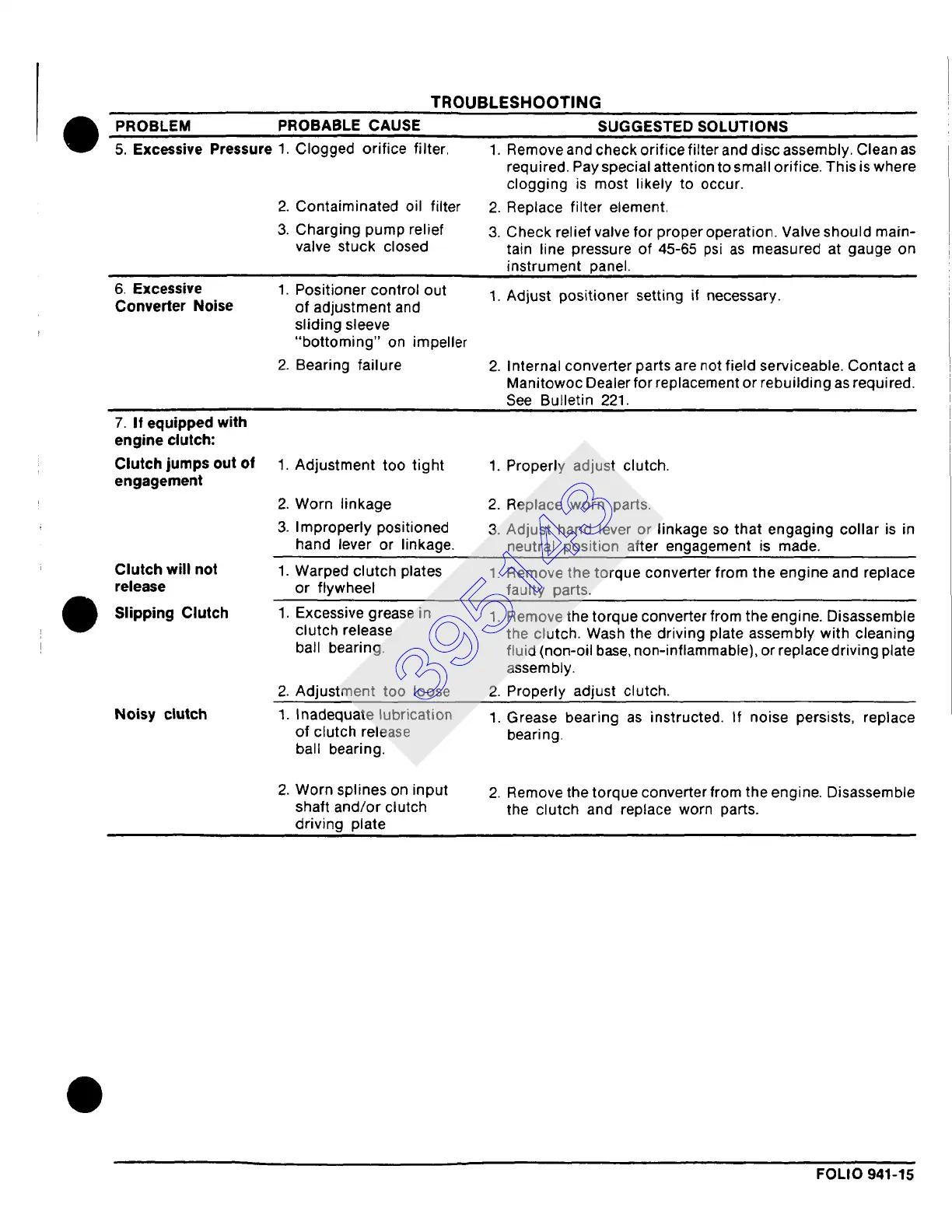 1. Warped clutch plates 1. Remove the torque converter from the engine and replace