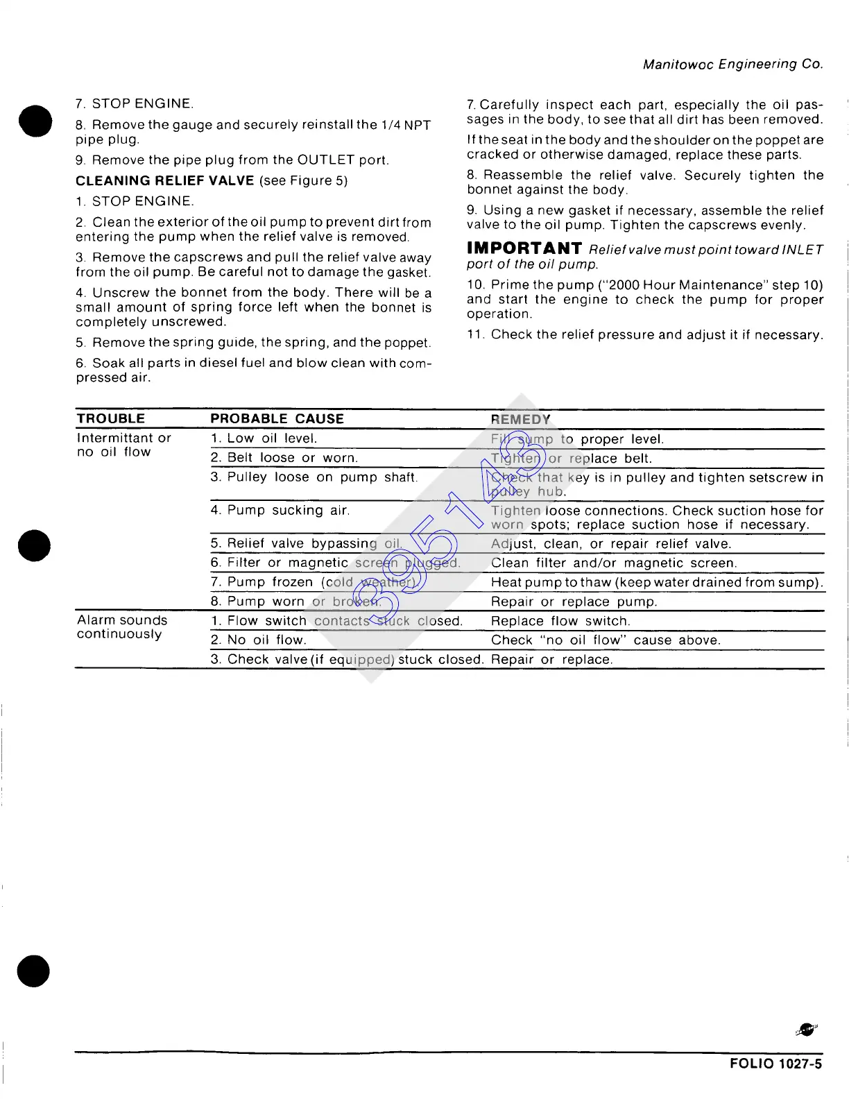 CLEANING RELIEF VALVE (see Figure 5)
