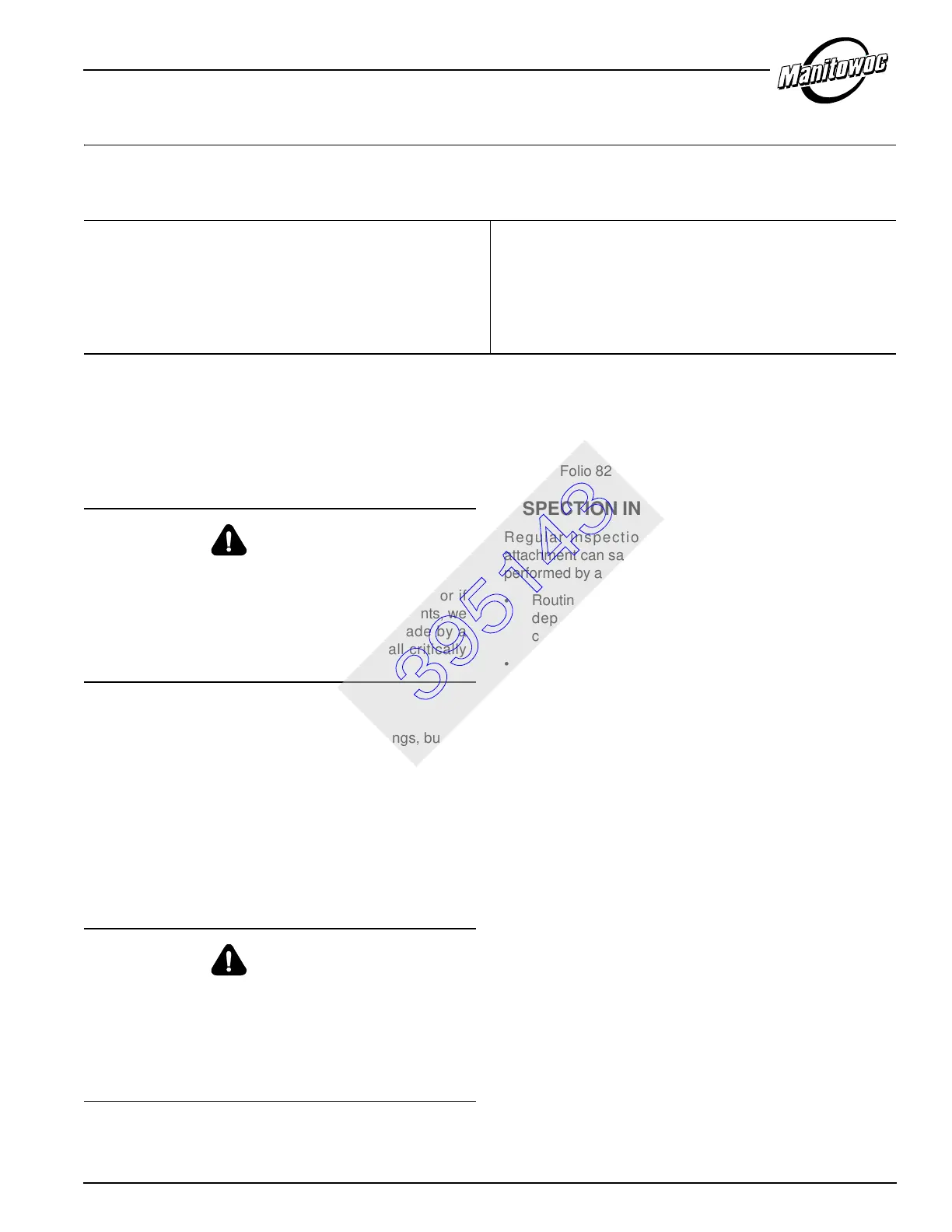 attachment can safely lift its rated load. Inspection should be
