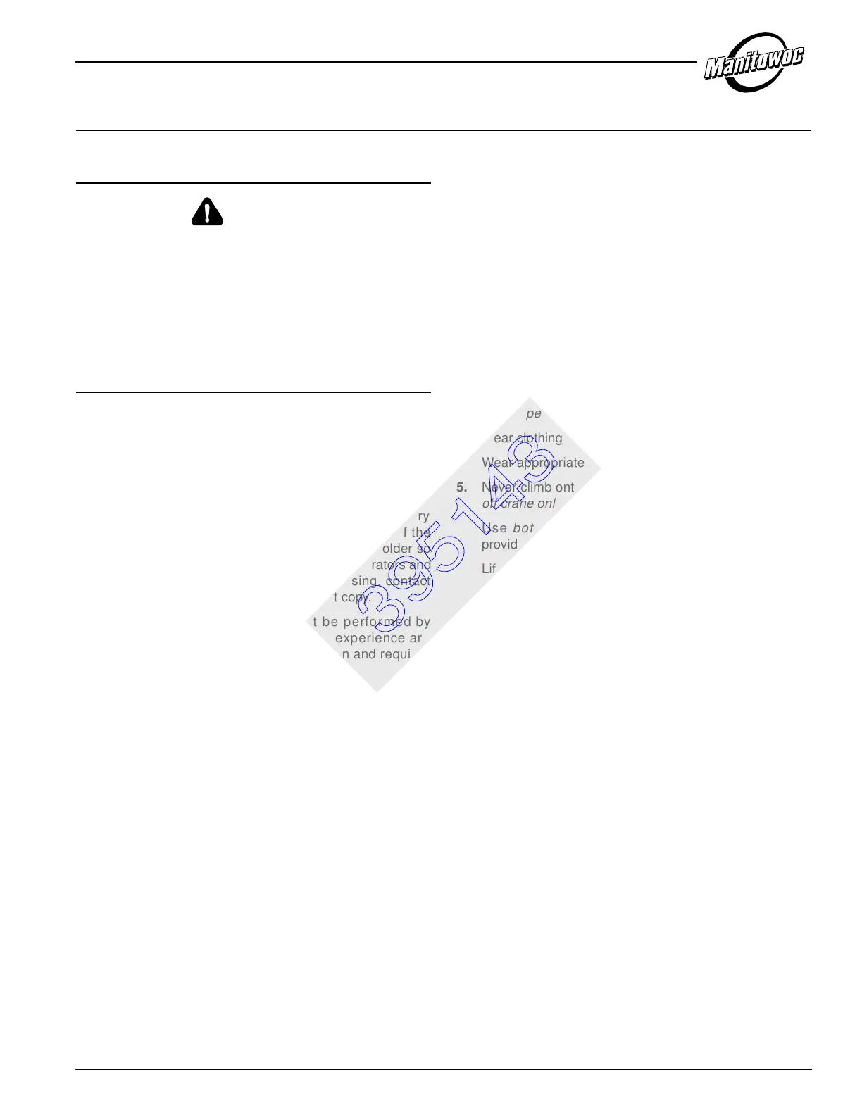 safe maintenance. Manitowoc cannot foresee all hazards