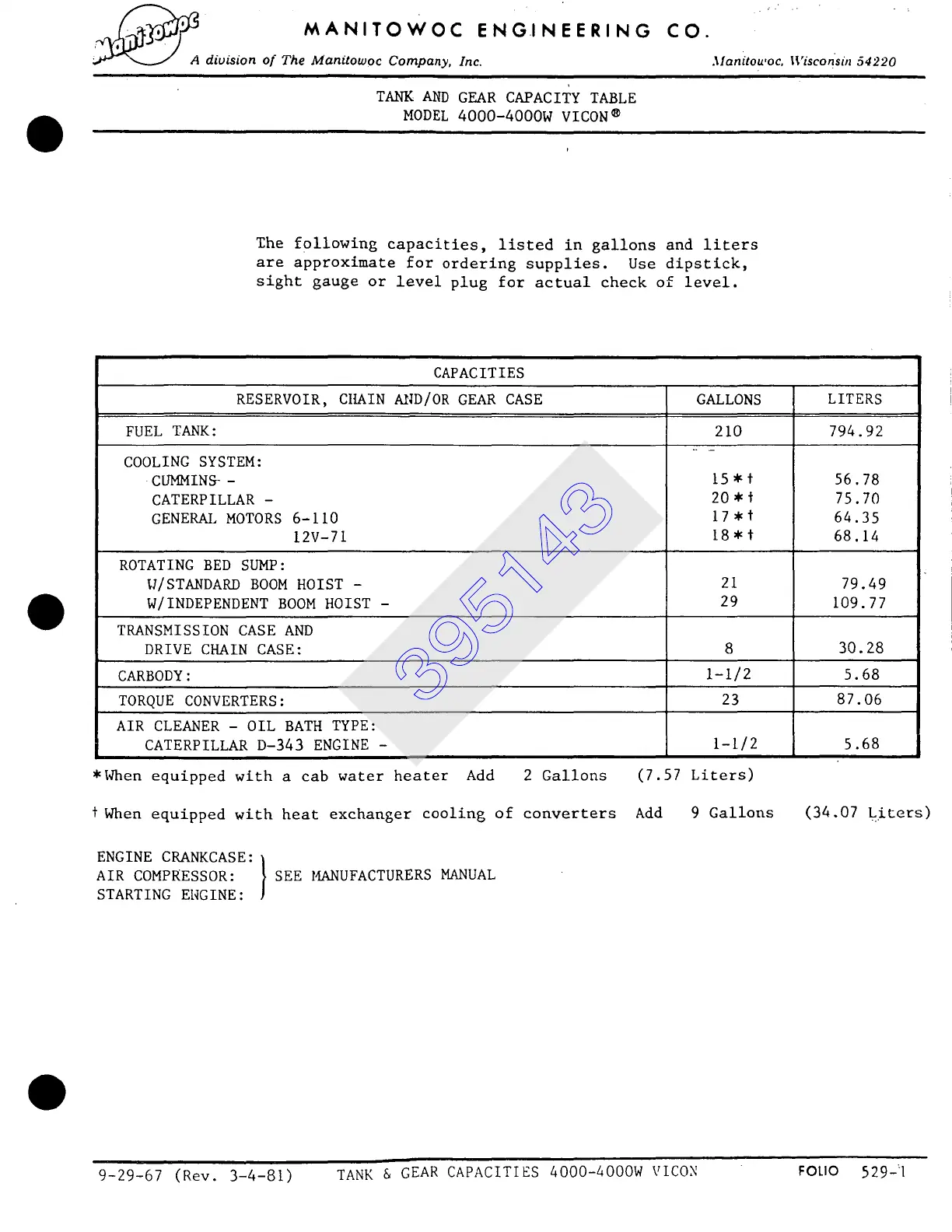 9-29-67 (Rev. 3-4-81) TANK & GEAR CAPACITIES 4000-4000W VICON FOLIO 529-'I