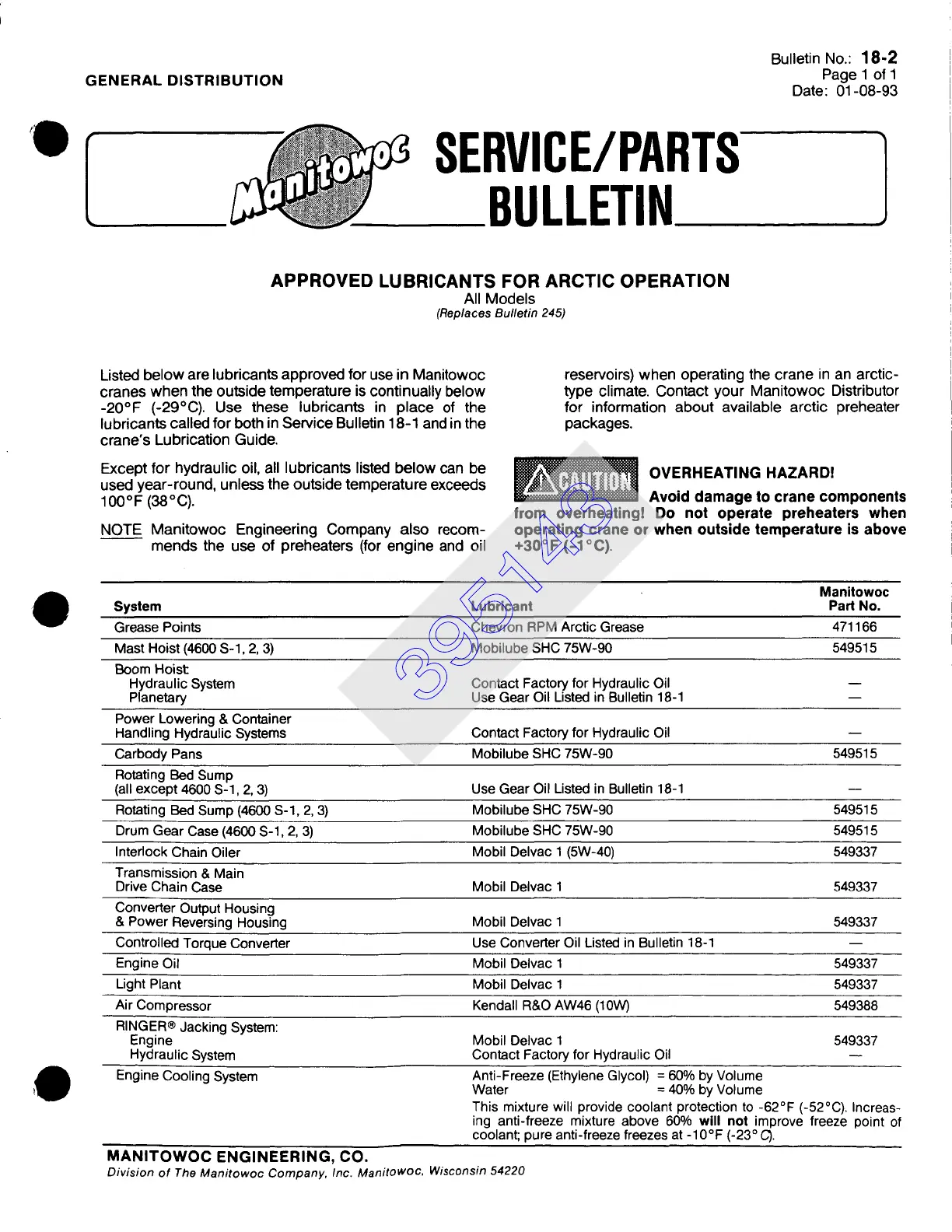 NOTE Manitowoc Engineering Company also recom-