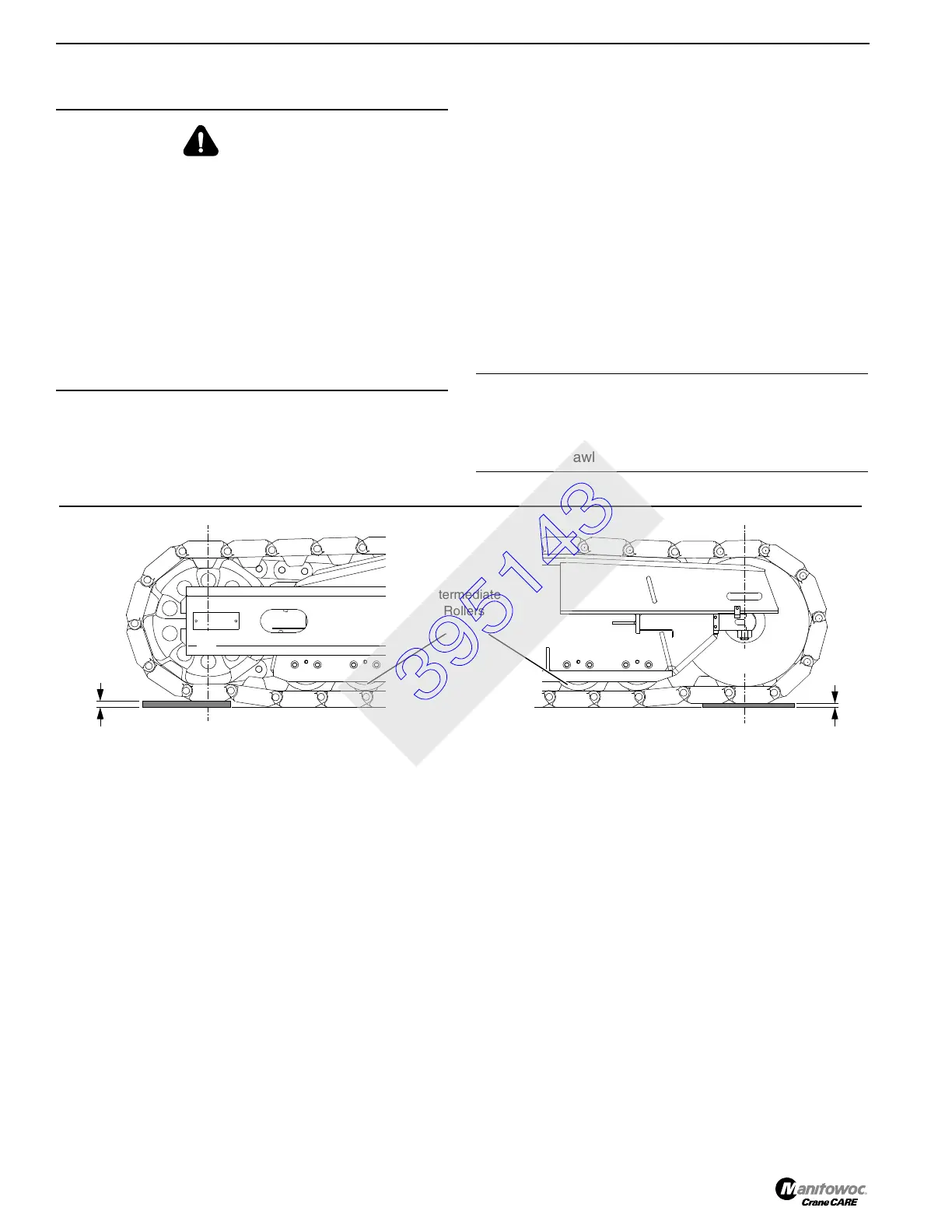 The blocking ensures that the centerline of the crawler rollers