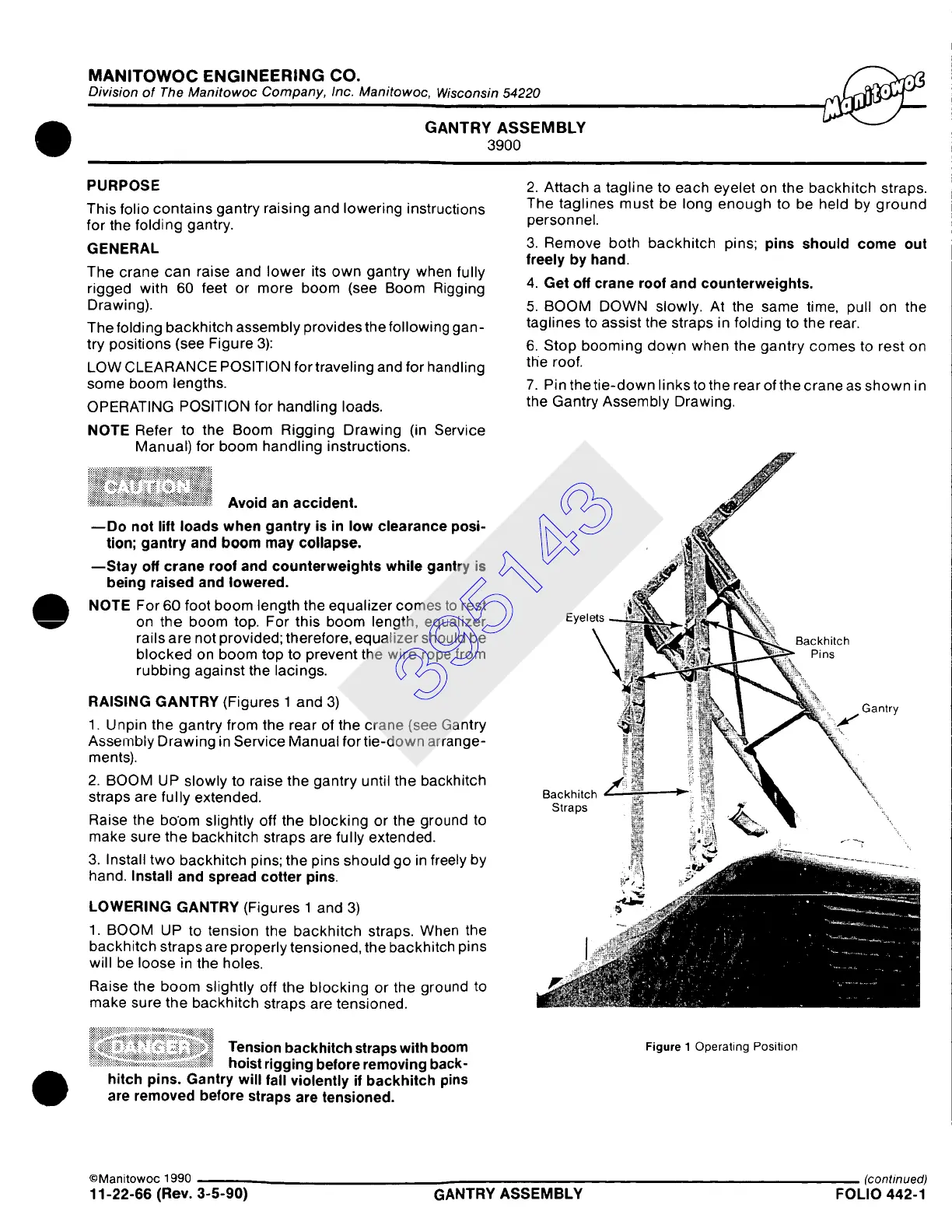 11-22-66 (Rev. 3-5-90) GANTRY ASSEMBLY FOLIO 442-1
