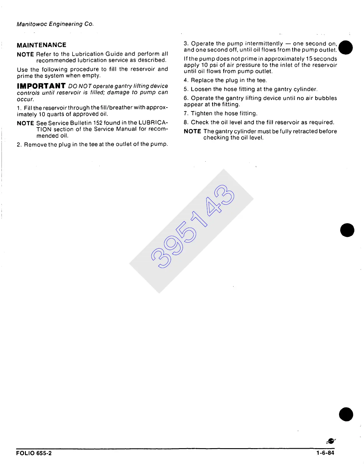 NOTE See Service Bulletin 152 found in the LUBRICA-