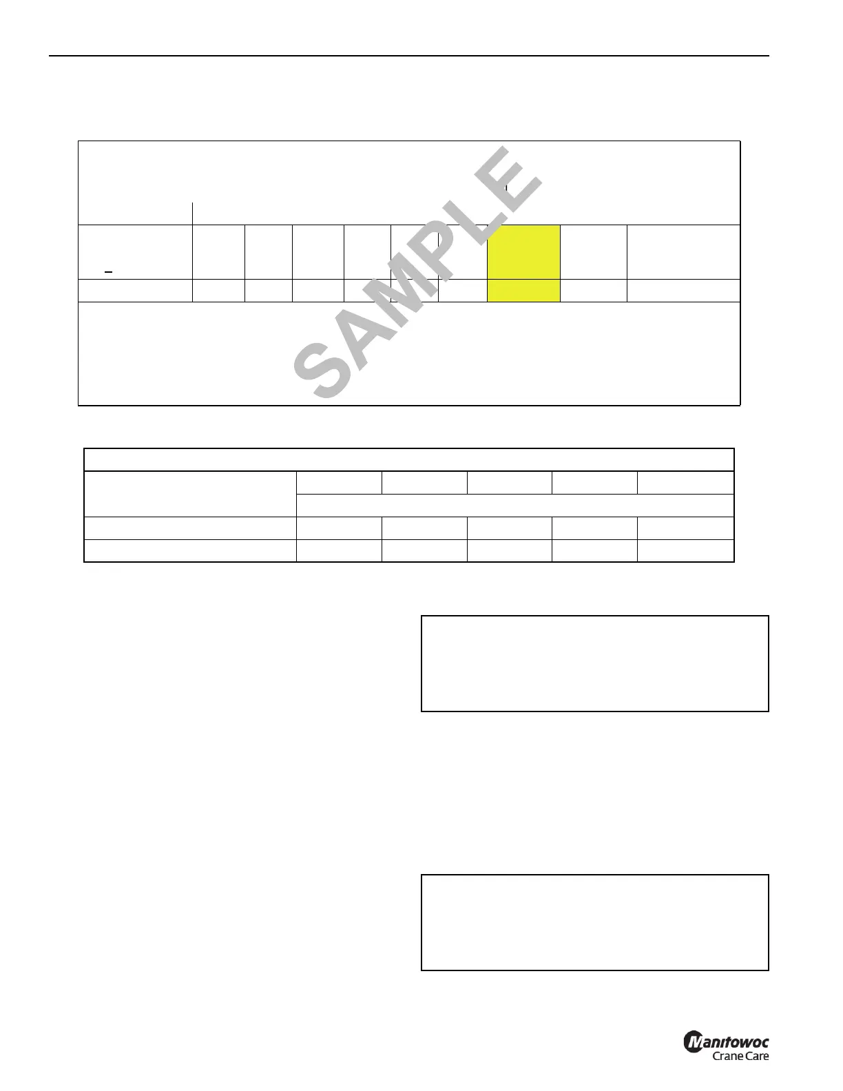 (Only for lifting with main boom on fully extended outriggers, with or without stowed extension)