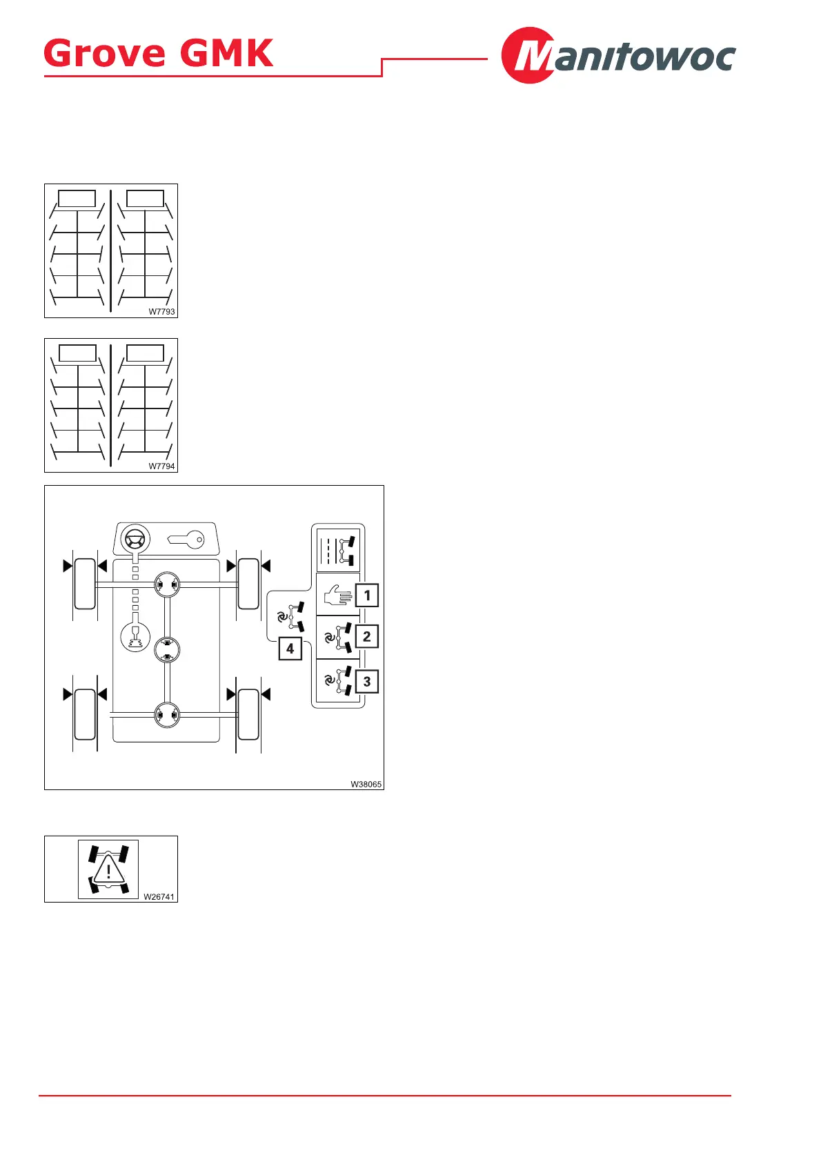 Separate steering Always switch off the separate steering when driving a rigged truck crane.