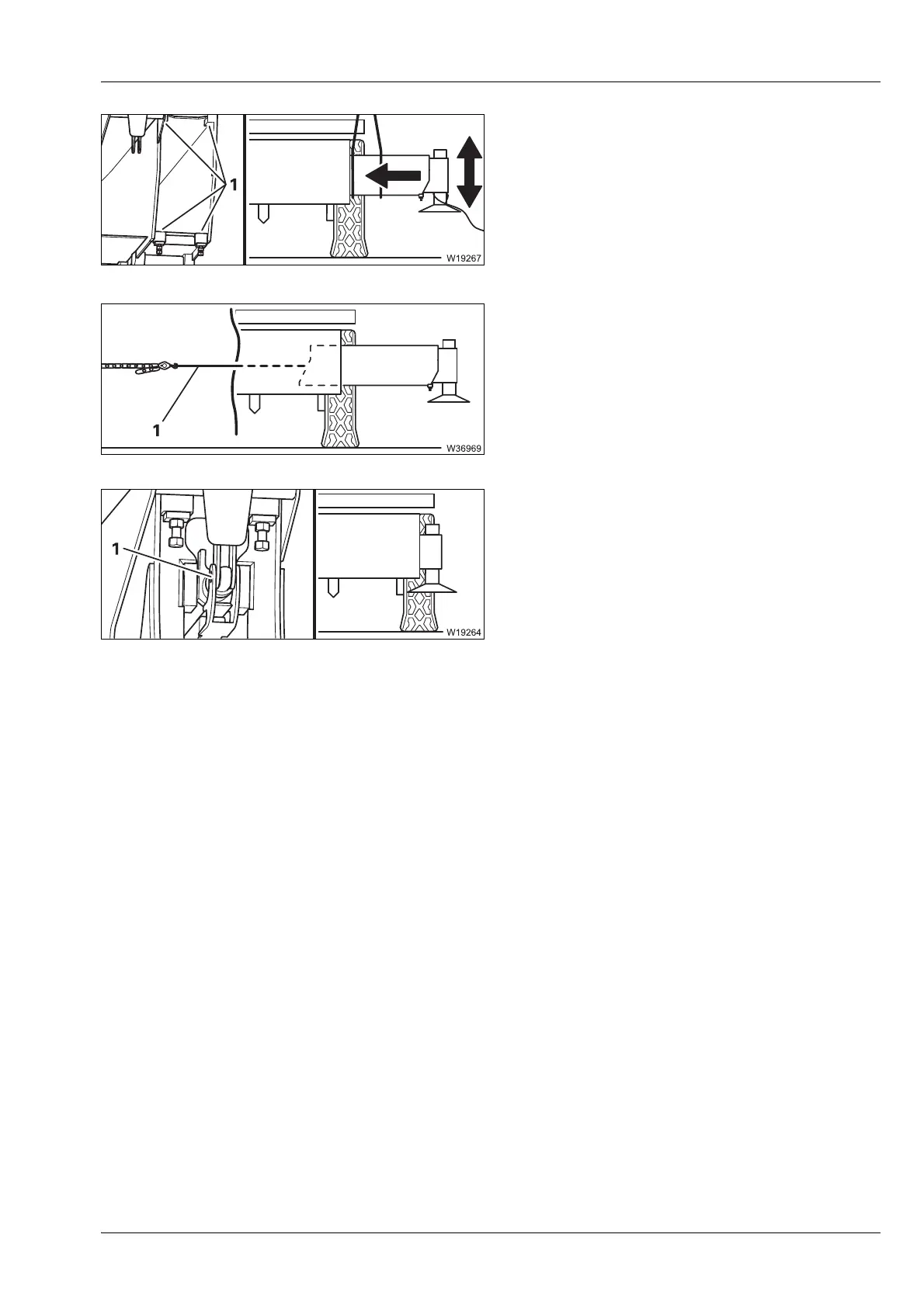 • Fasten a chain hoist to the lifting gear (1).