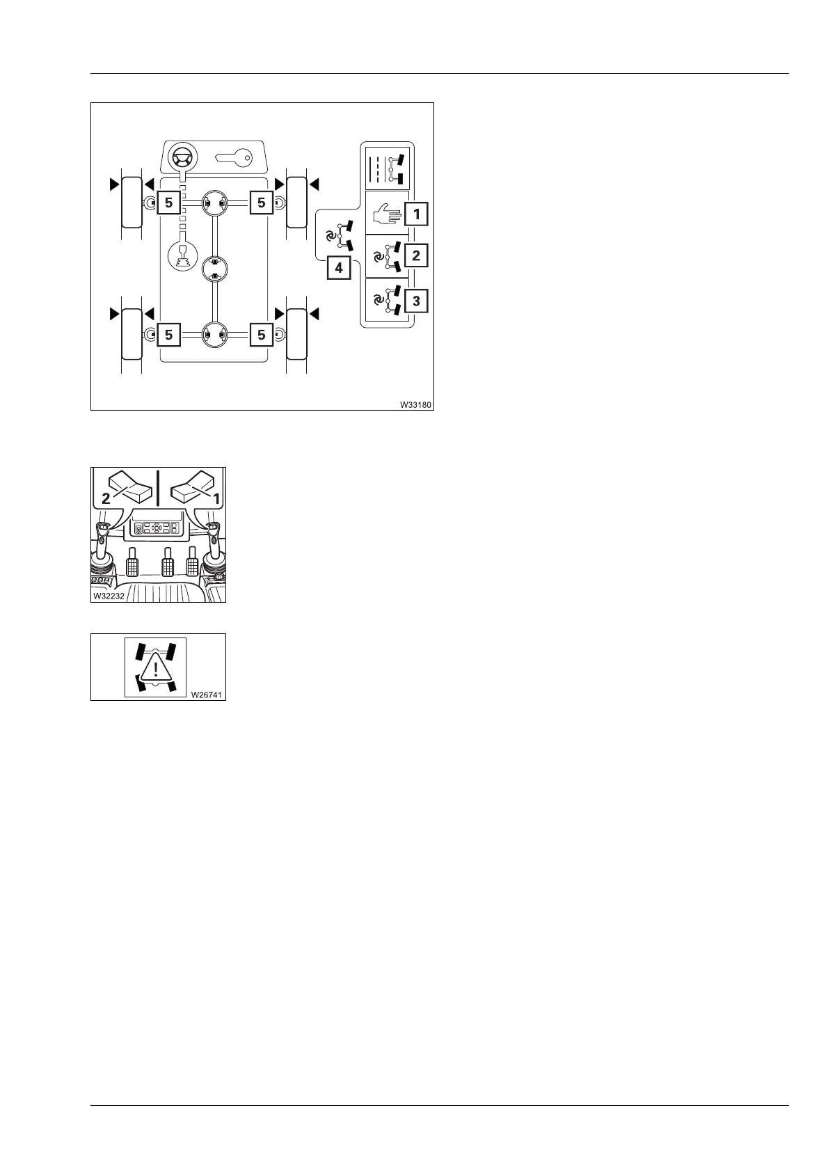 Steer using the buttons (1) or (2) until the symbols (5) turn red.