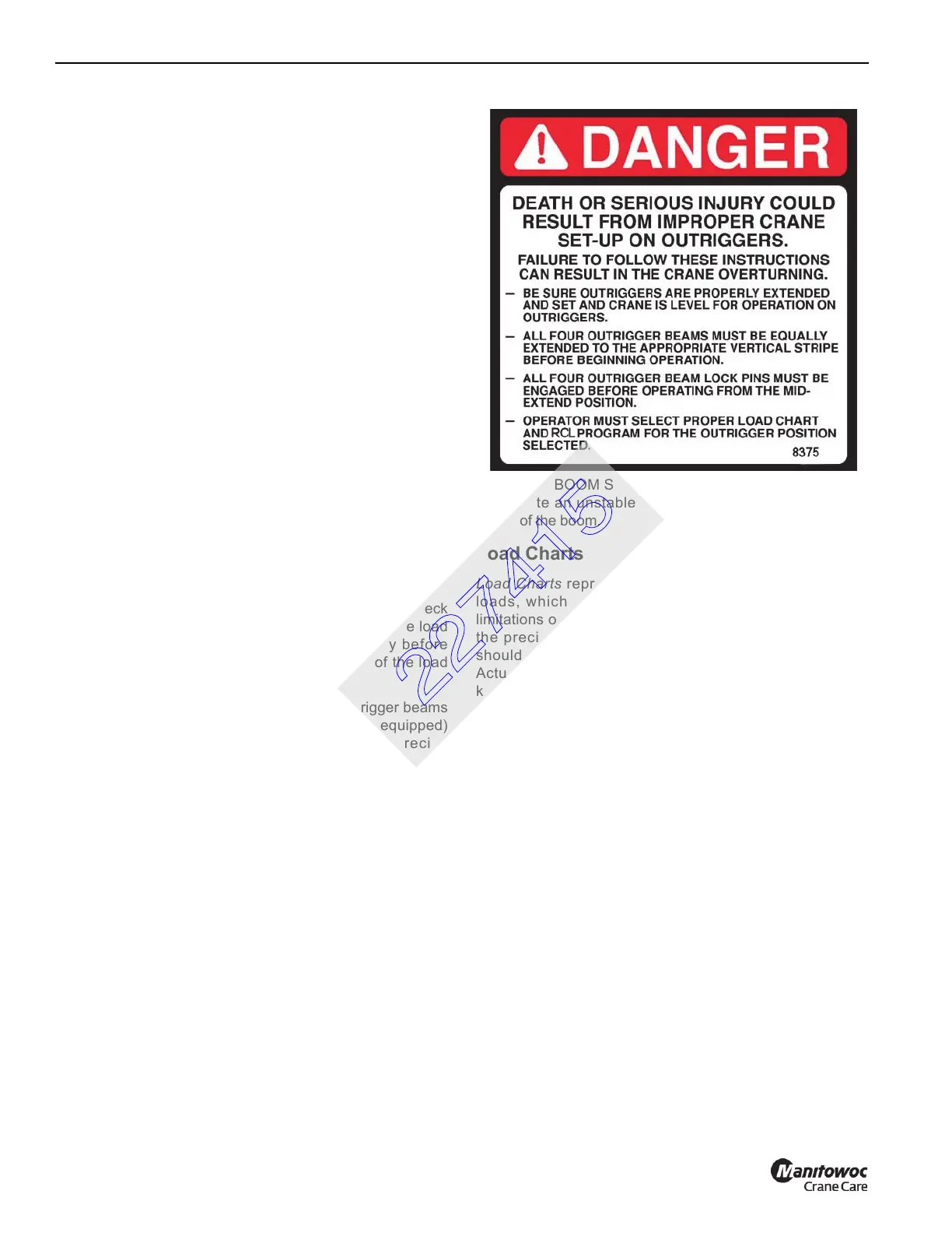 Do not remove the Load Charts from the crane.