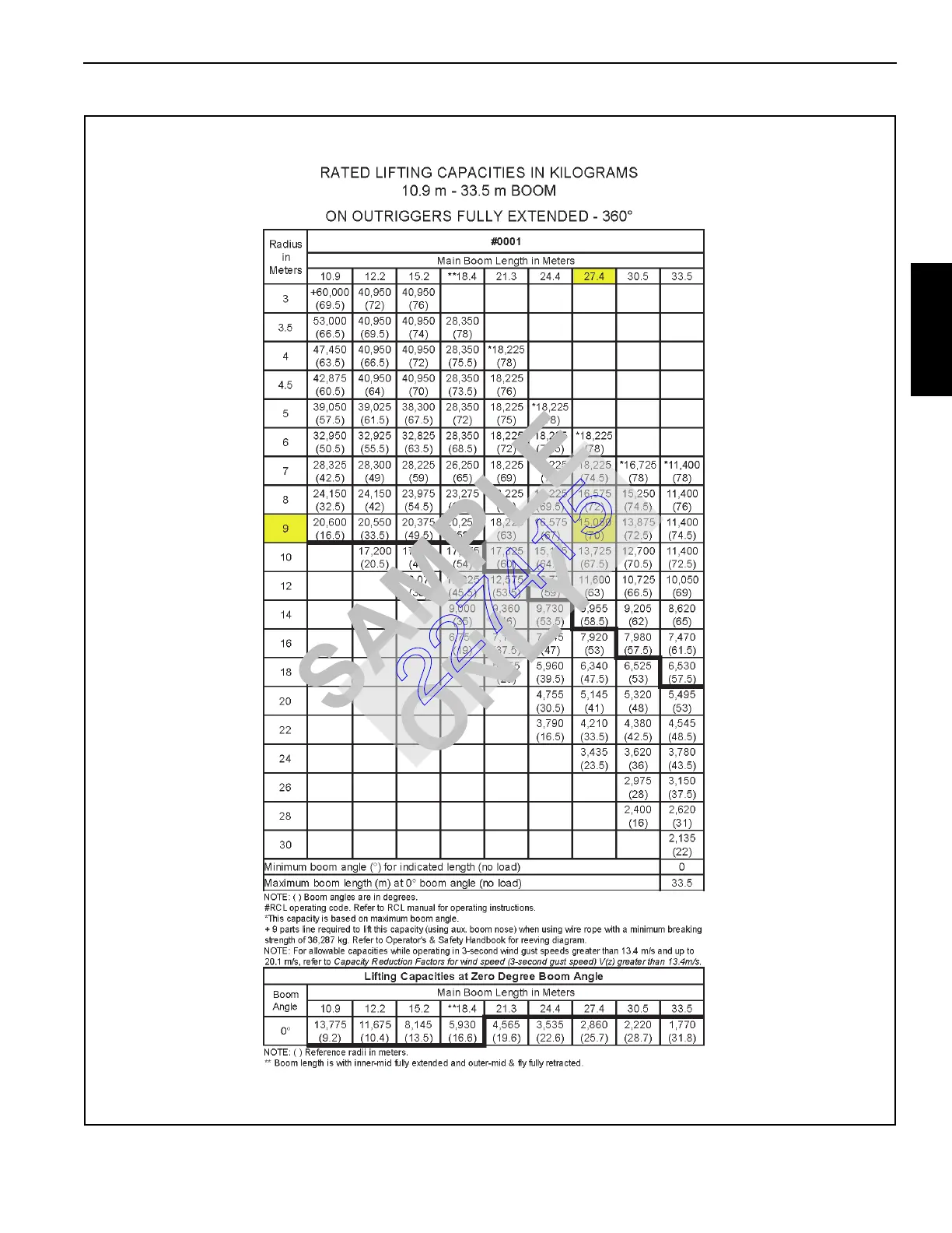 Rated Load Chart Example - Metric