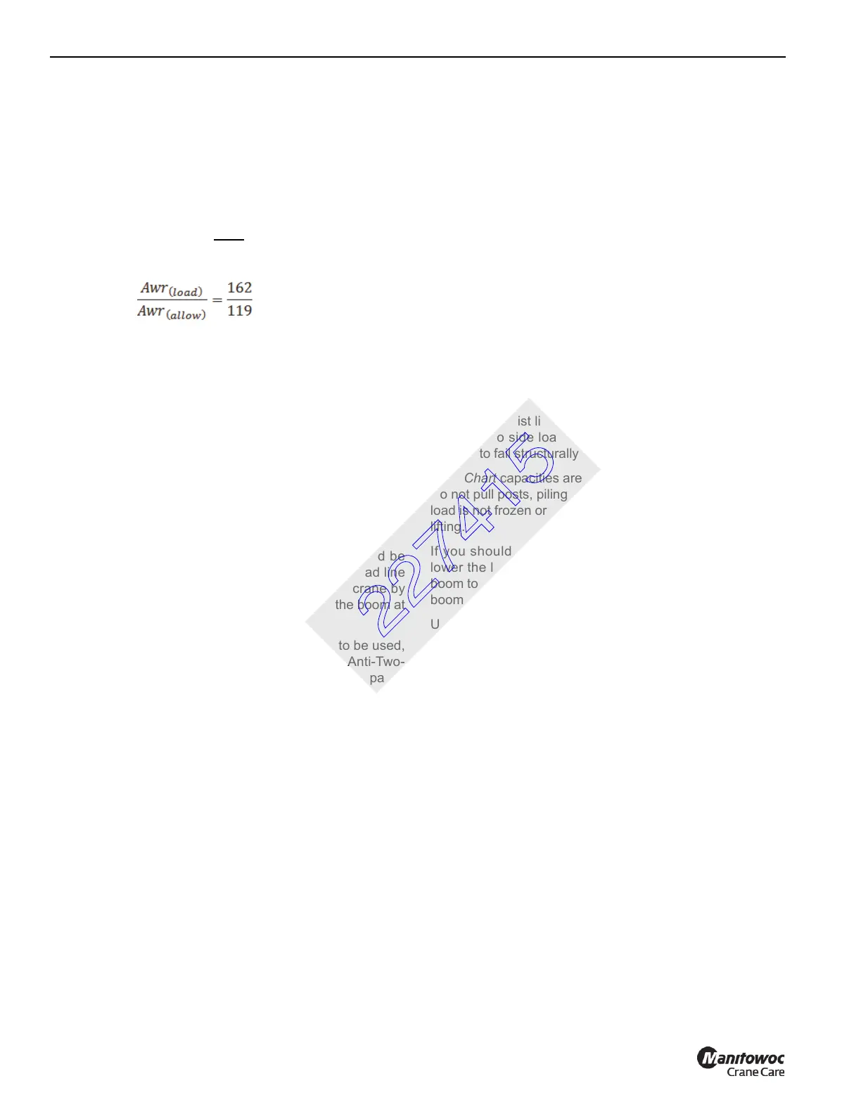 crane’s capacity is not exceeded when this occurs.