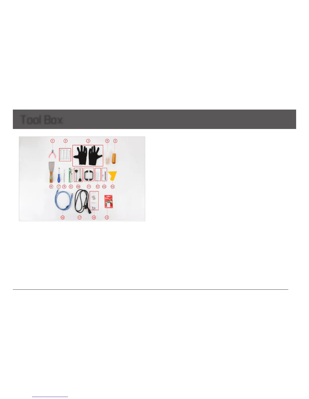 14) 1* Plastic scraper: to clean the heat bed after printing.