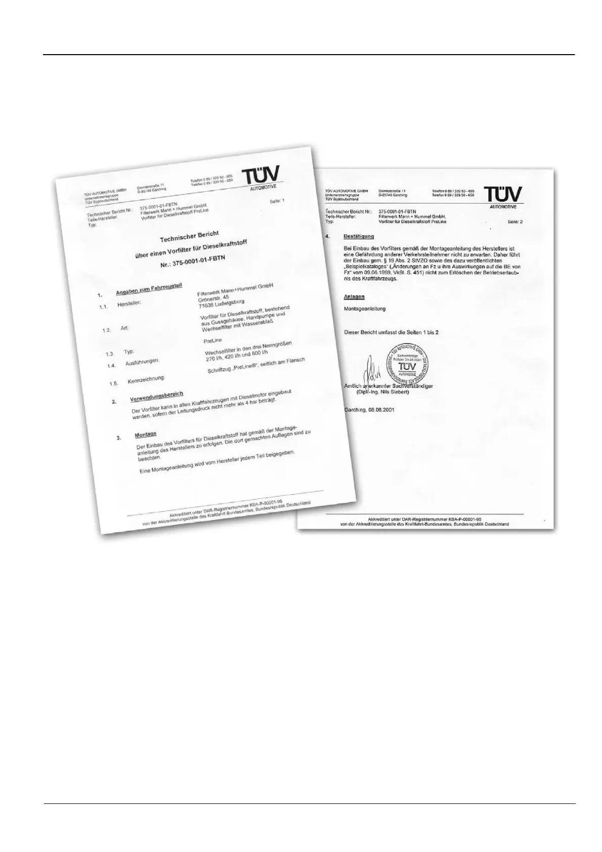 Für das Filtersystem PreLine ist die Unbedenklichkeit der Verwendung in Kraftfahrzeugen durch