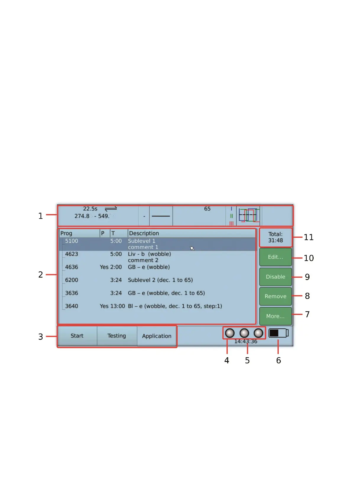 • The Application-screen allows to change the list (e.g. delete or move entries).