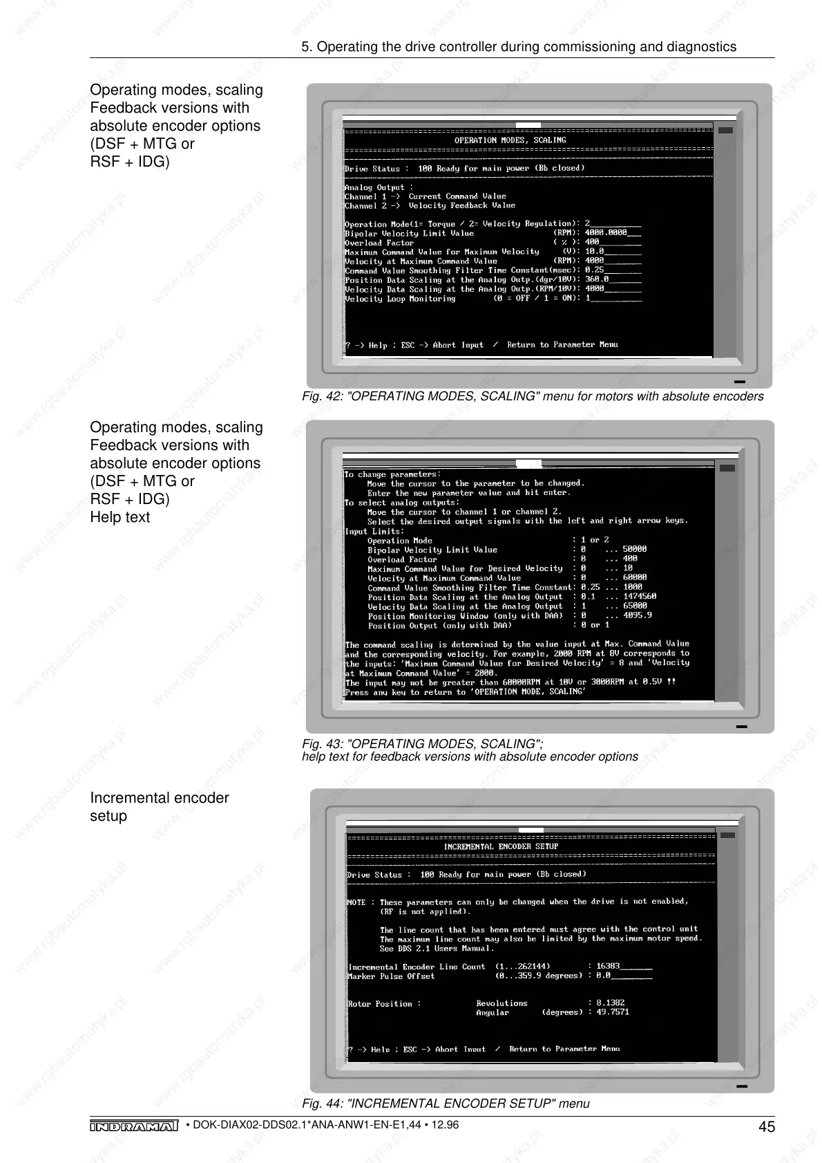 Fig. 42: "OPERATING MODES, SCALING" menu for motors with absolute encoders