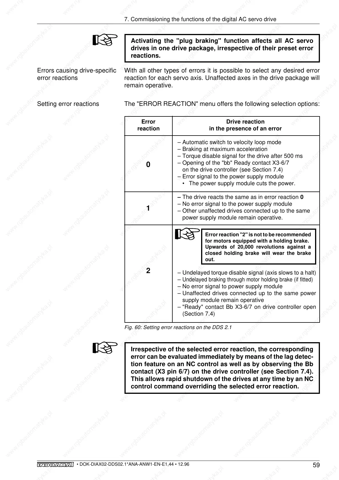 – The drive reacts the same as in error reaction 0