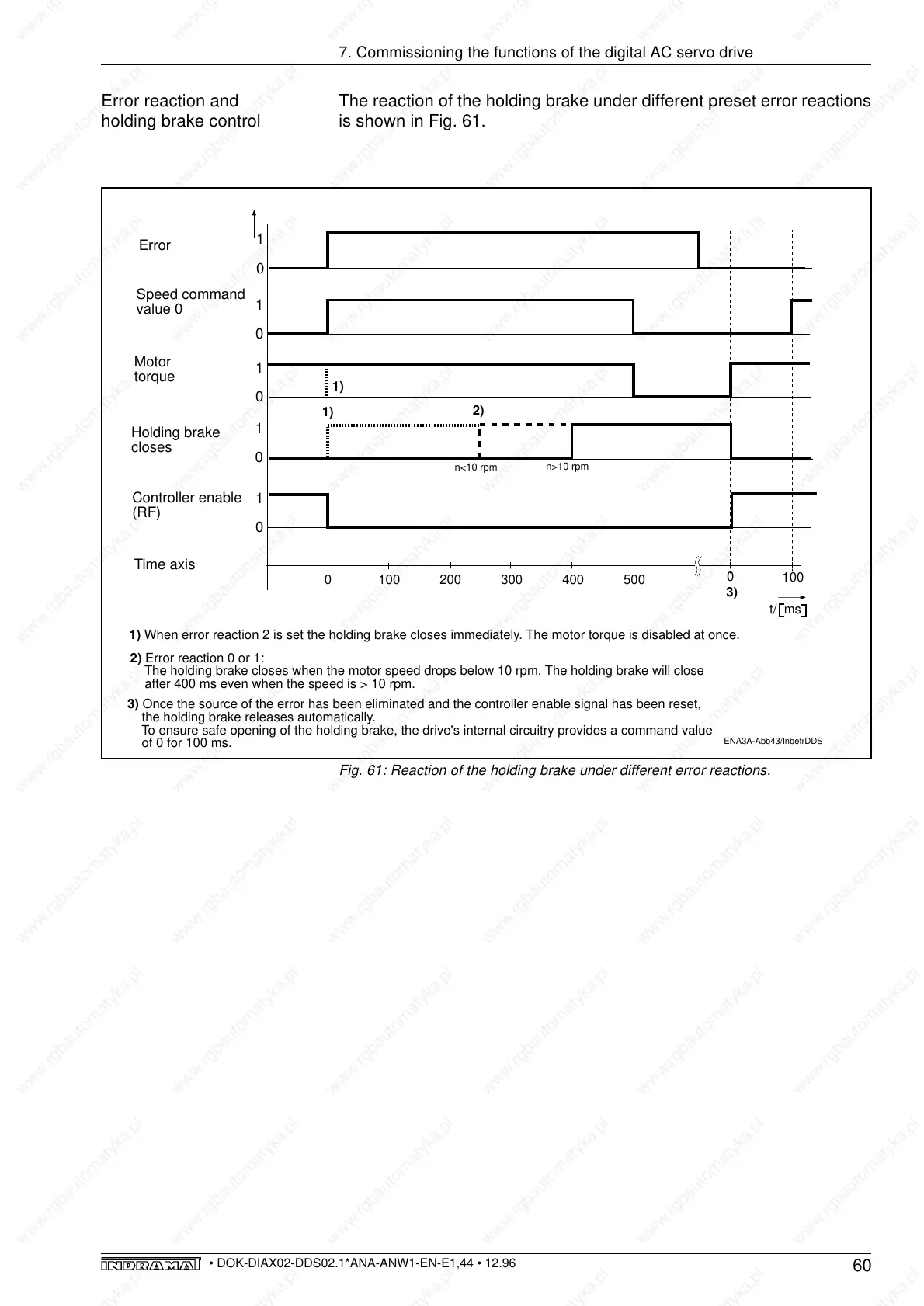 Fig. 61: Reaction of the holding brake under different error reactions.
