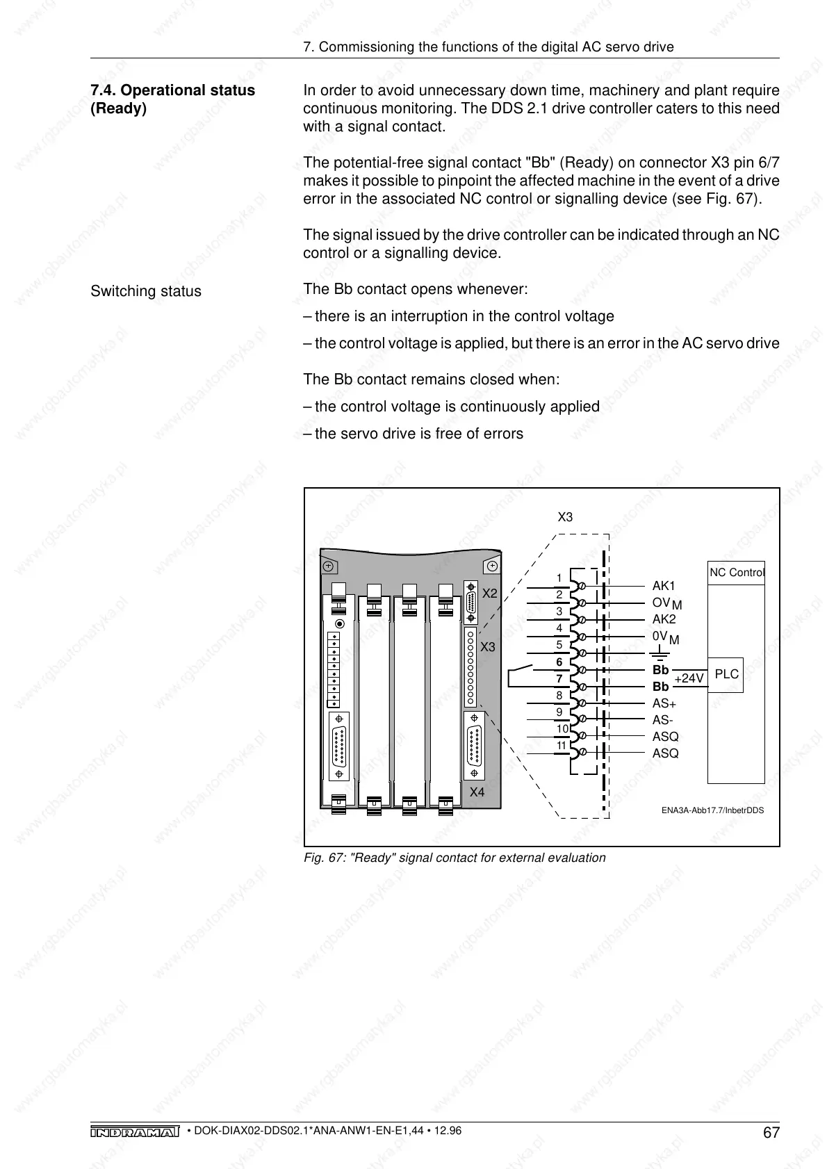 The potential-free signal contact "Bb" (Ready) on connector X3 pin 6/7