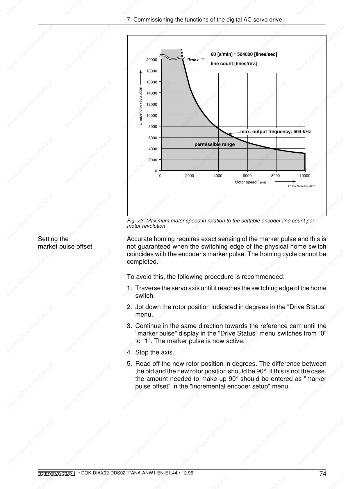 Fig. 72: Maximum motor speed in relation to the settable encoder line count per