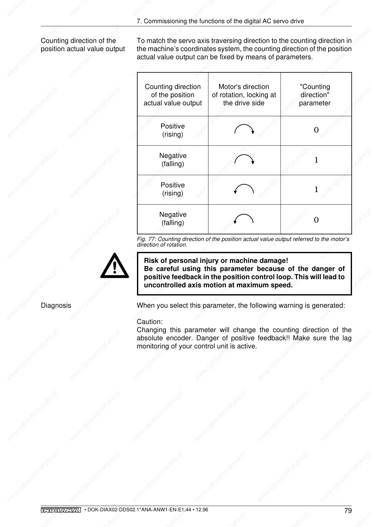 Fig. 77: Counting direction of the position actual value output referred to the motor’s