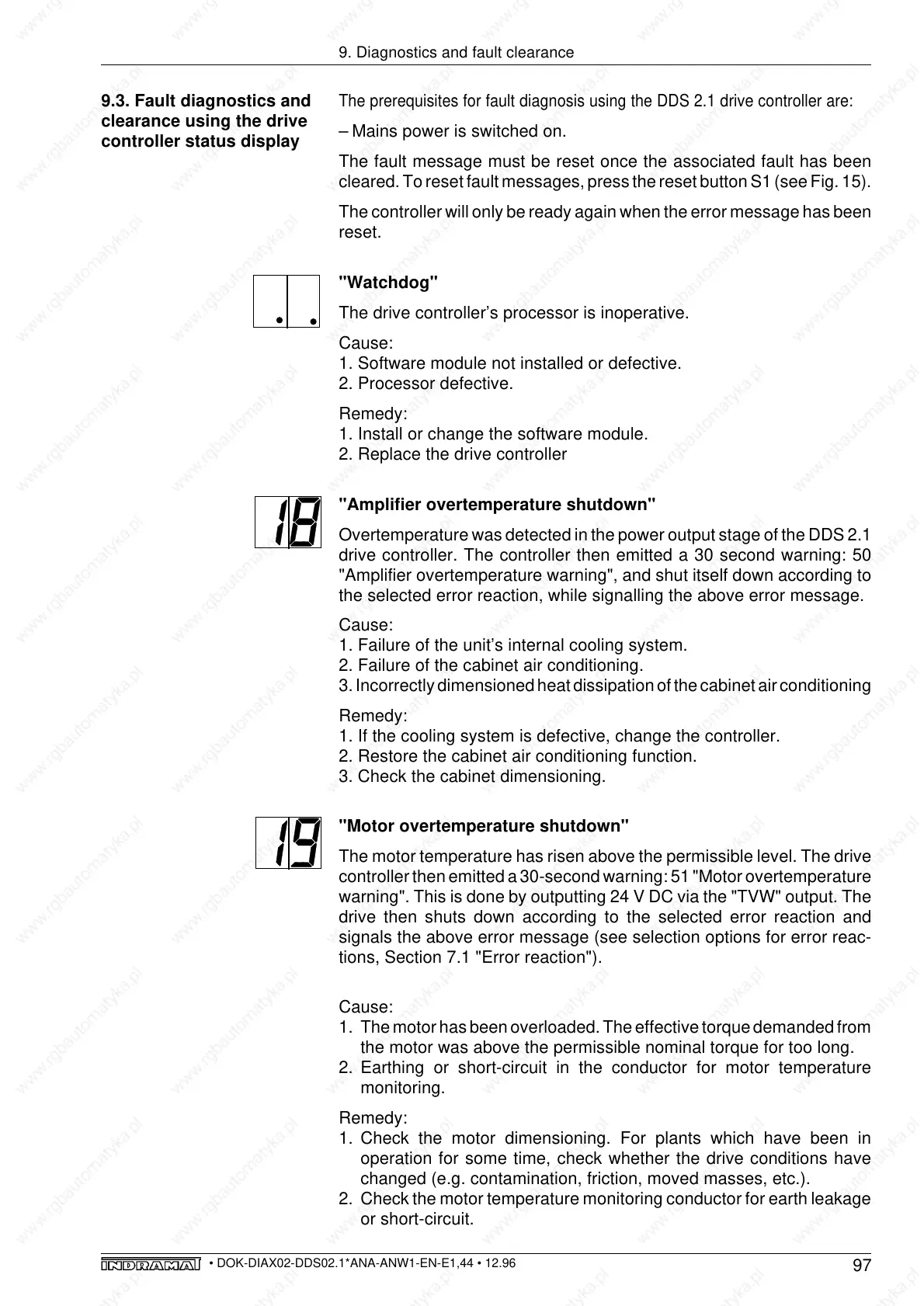 cleared. To reset fault messages, press the reset button S1 (see Fig. 15).