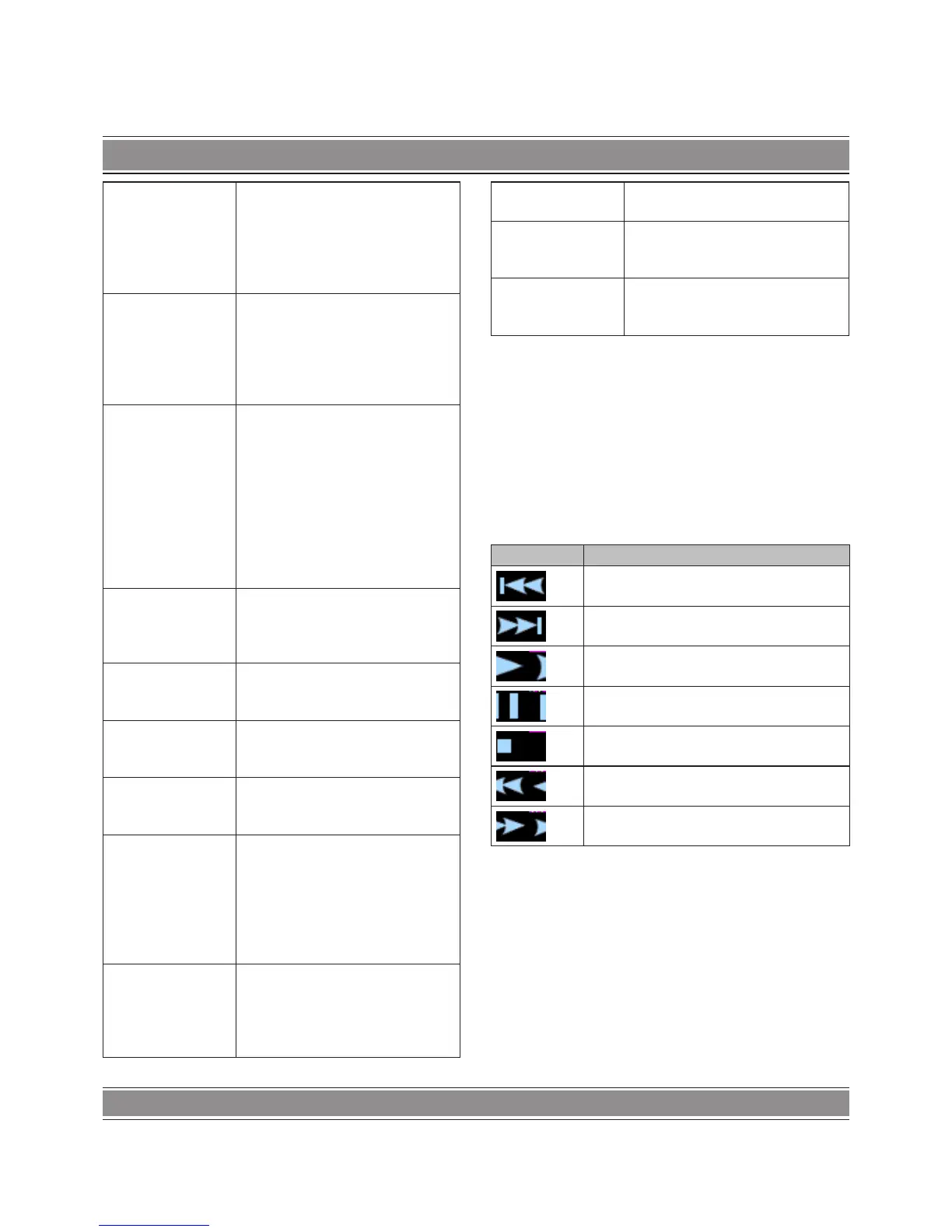 poniżej. Przyciski niewystępujące w tabeli są nieaktywne.
