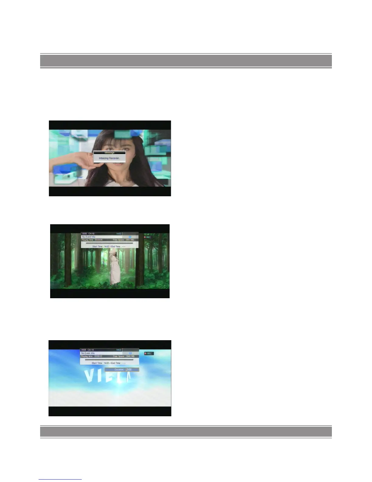 top area, and record program play will beginning at recording