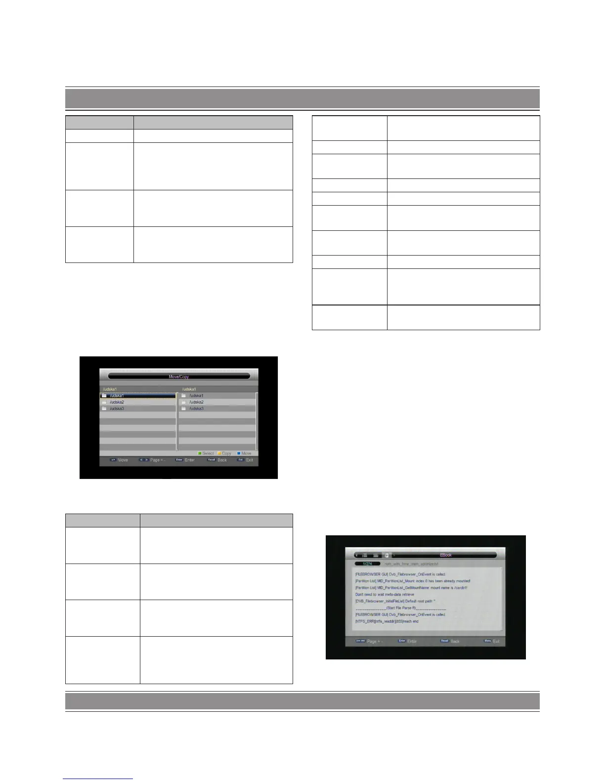 The menu of e-book is like file browser menu, the keys work