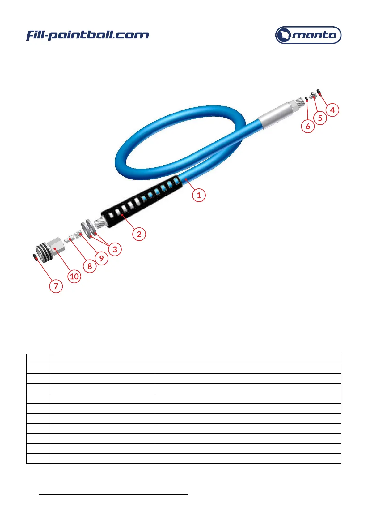 Table 6. List of hose parts with female quick release coupler and fuse (Figure 9):