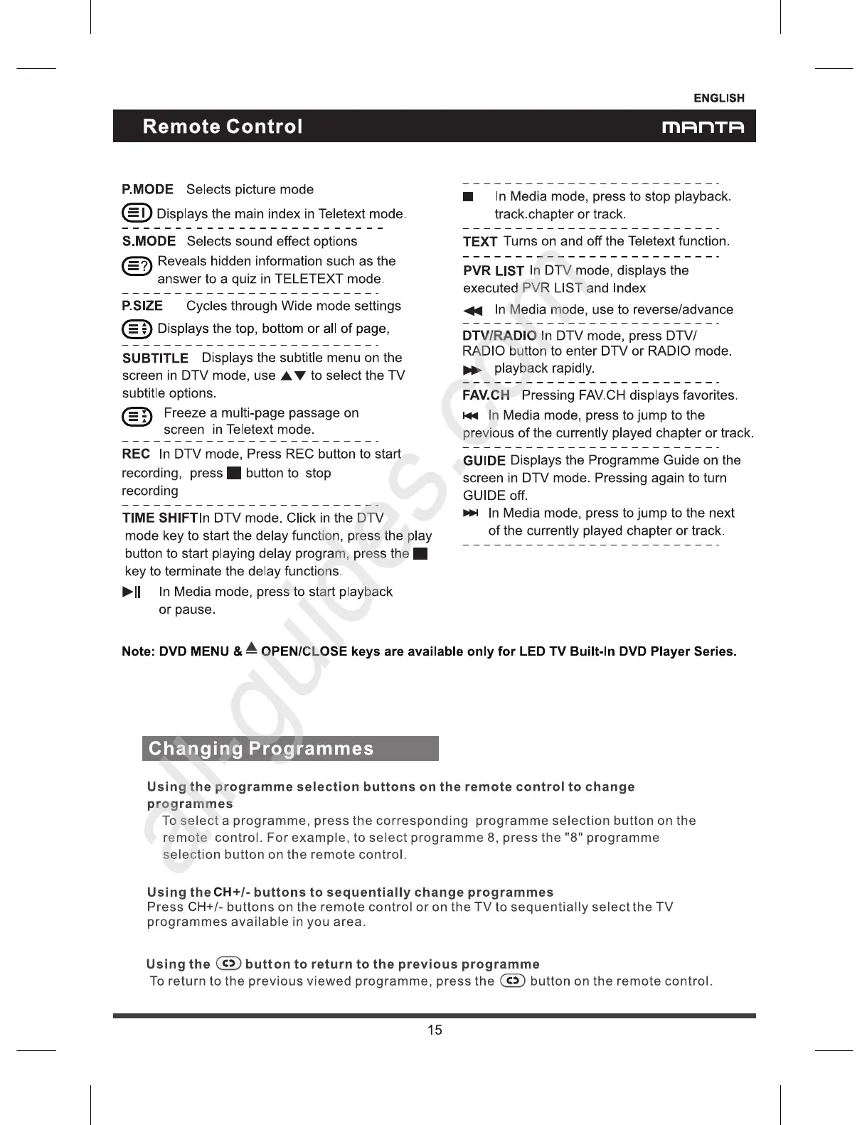 Manta LED1902 - Remote Control; Advanced Remote Control Functions