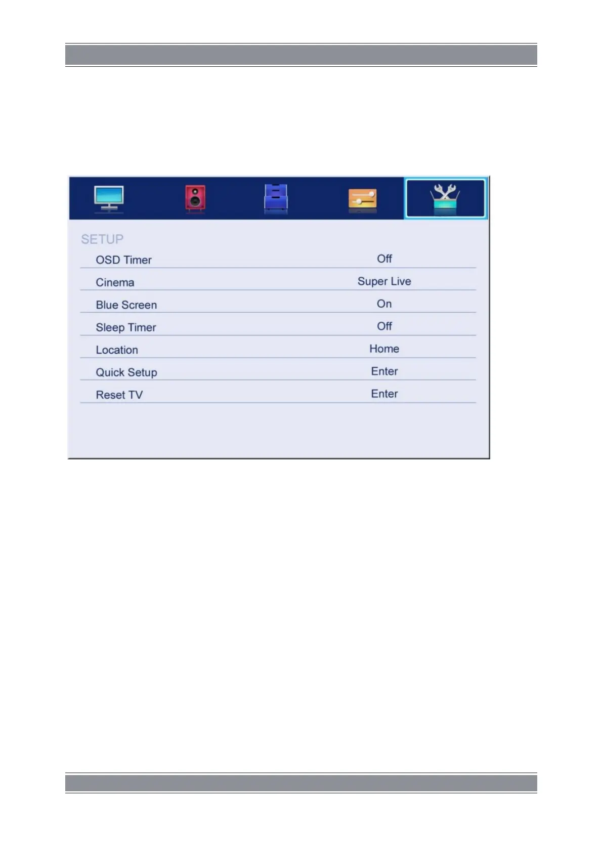 Strzałkami ▲/▼ wybierz opcję Ustawienia (Setup) menu głównego i wejdź do menu