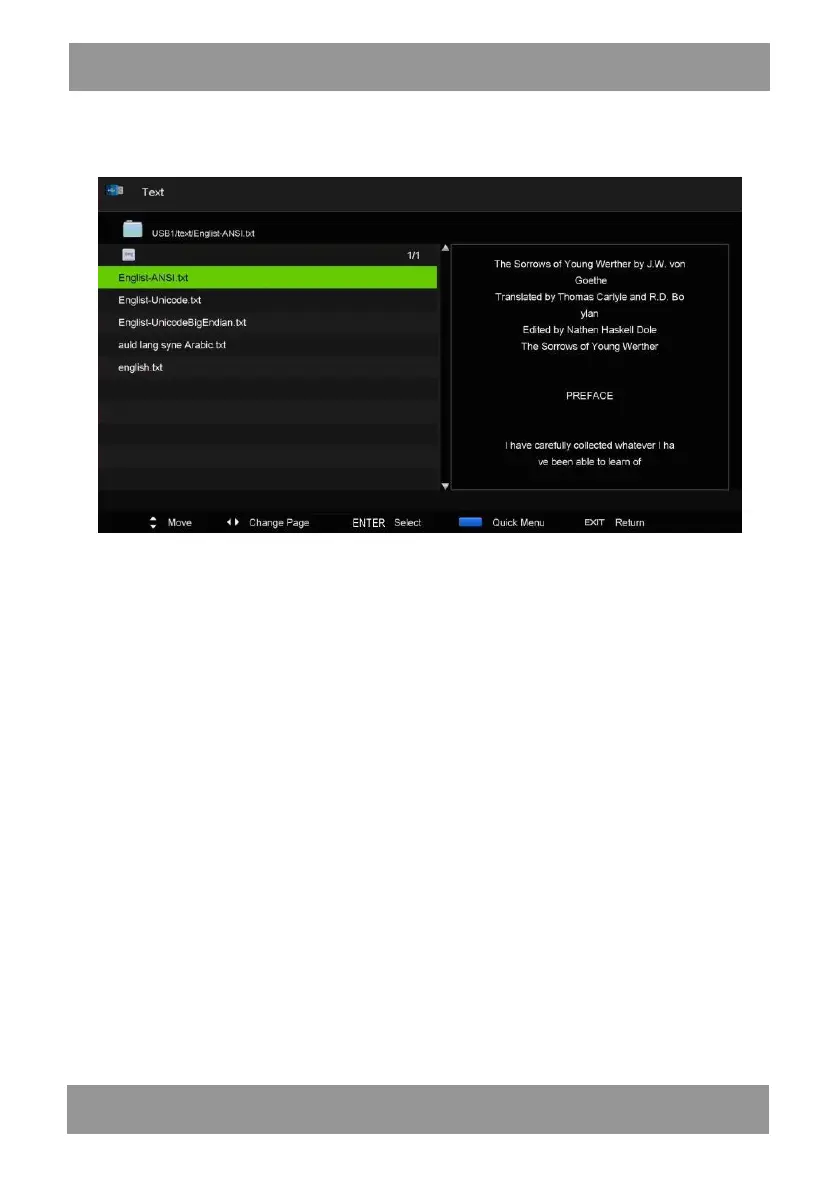 1.Naciśnij przycisk ◄ / ► , aby wybrać „Text” (tekst) w menu głównym. Następnie