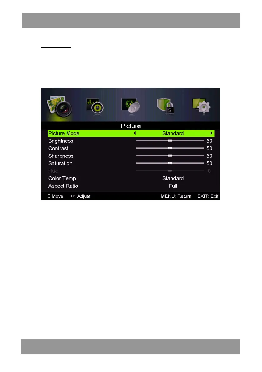 “PICTURE” menu. Press “/” button to select “Picture Mode” and press the “/” button to