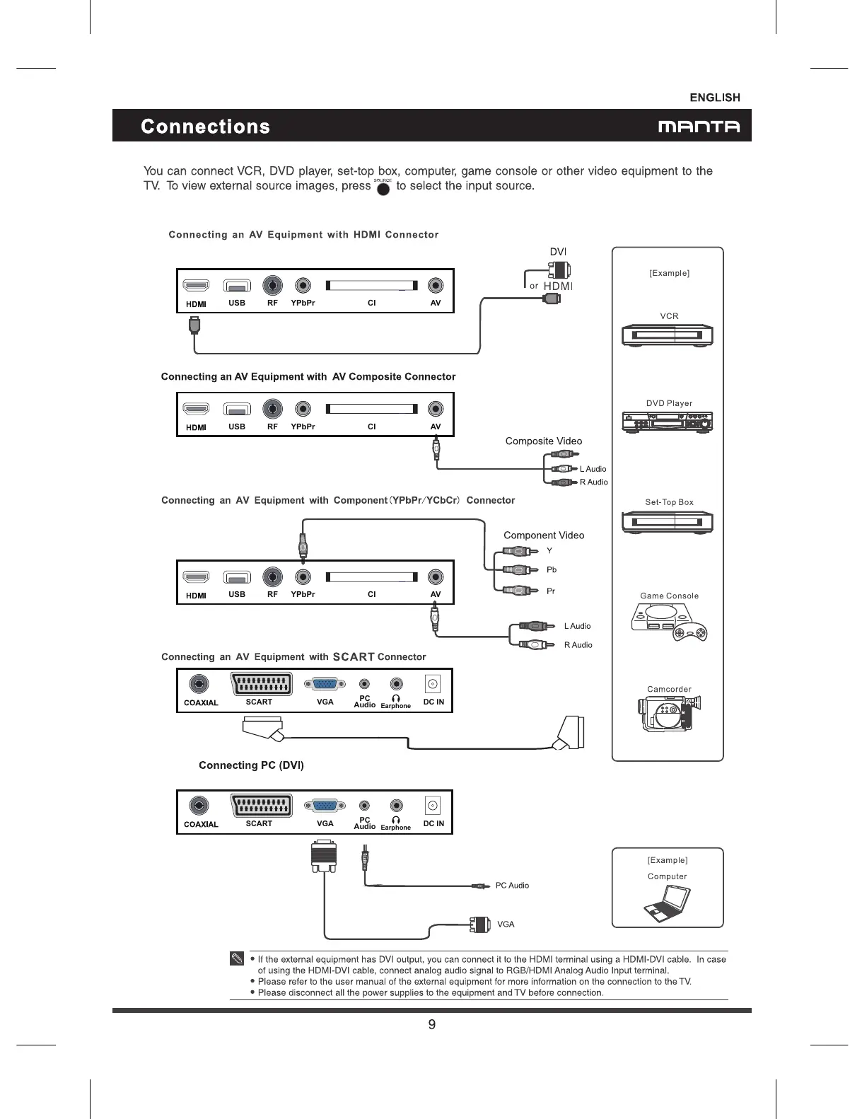 Manta LED2205 - Connections; AV Equipment Connections