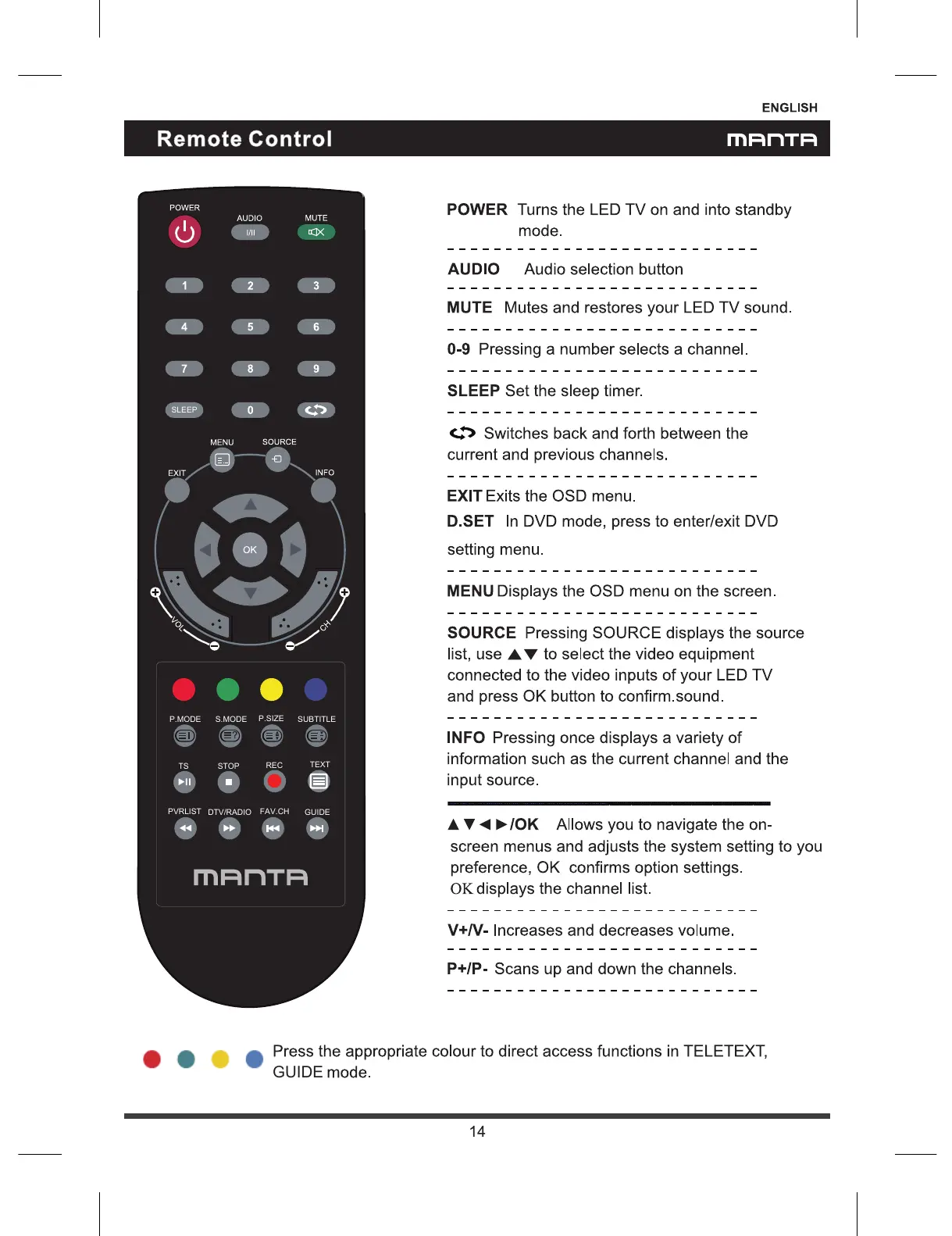 Manta LED2205 - Remote Control Button Functions