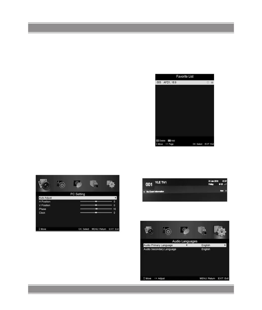 When the source is selected as DTV, users can enter Favorite