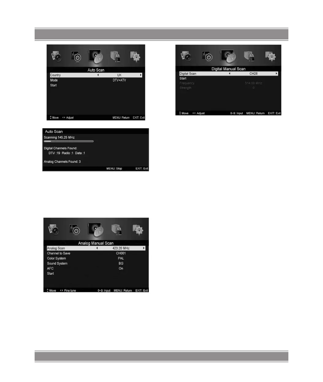 Tasten / drücken, um manuelles Scannen (Manual Scan)