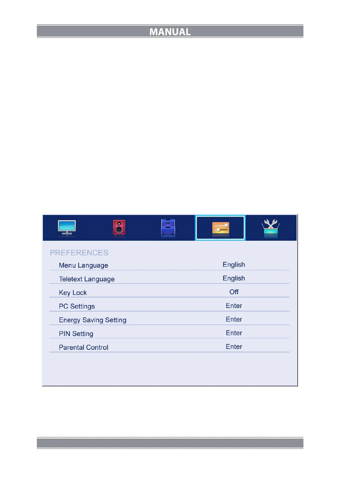 1. Press ▲/▼ button to select the option that you want to adjust in the PREFERENCES