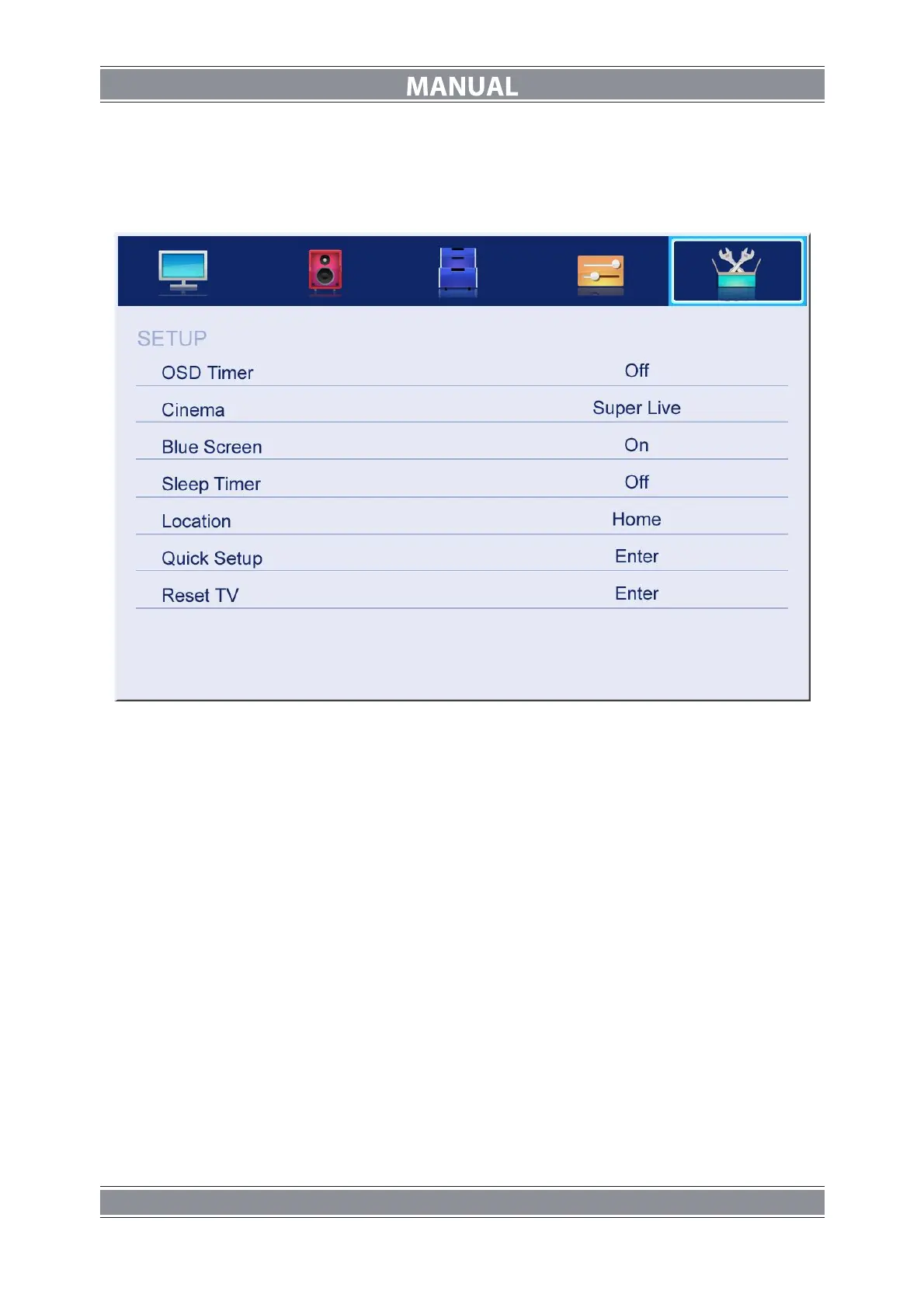 Press ▲/▼ button to select Setup in the main menu, then press ENTER to enter.