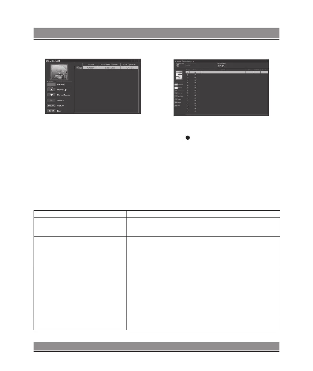 c) Press / button to select “Scheduled Record” and press