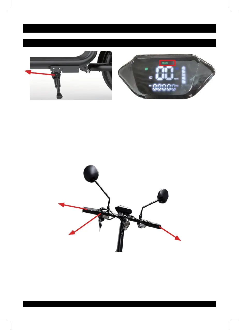 Lovaglás előtt hajtsa be a kitámasztót, különben baleset és sérülés veszélye állhat fenn