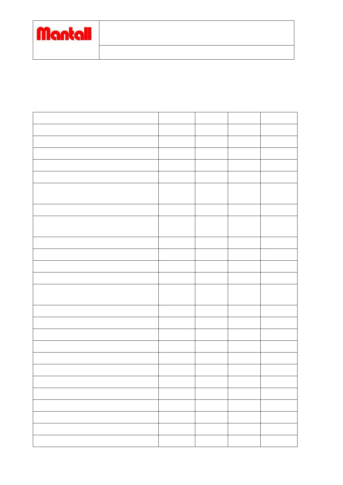 Mantall XE80W - Technical Specifications; Narrow; Compact Models Specifications