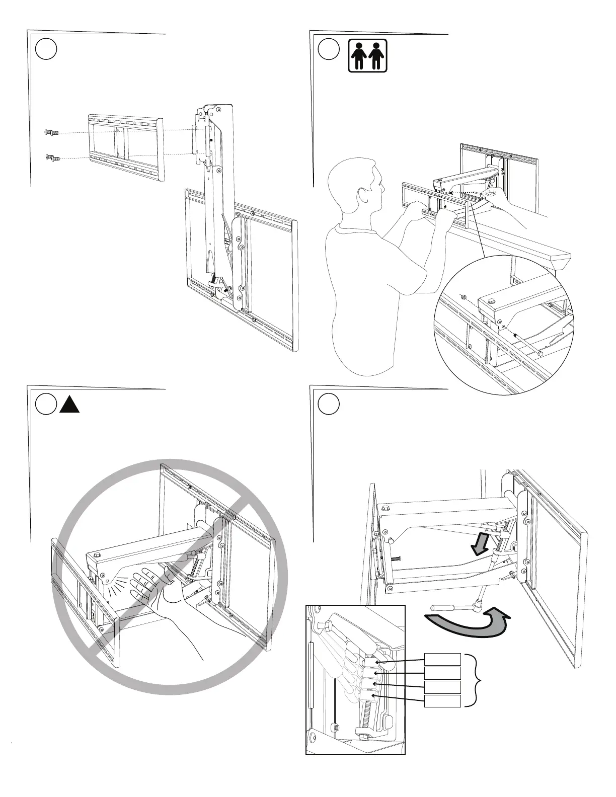 Install the TV Brace {33} to the Lifting Mechanism {35} Level the TV